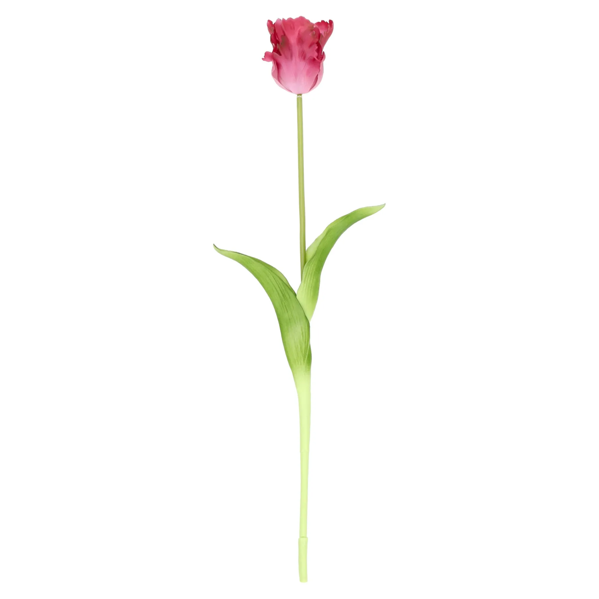 Kunsttulp met een real-touch afwerking in levendige fuchsiaroze tint. De bloem voelt zacht en natuurlijk aan, met een realistische vorm en bladstructuur. Dankzij de lengte van 62 cm is deze tulp ideaal voor een smalle vaas of als onderdeel van een kleurrijk boeket.