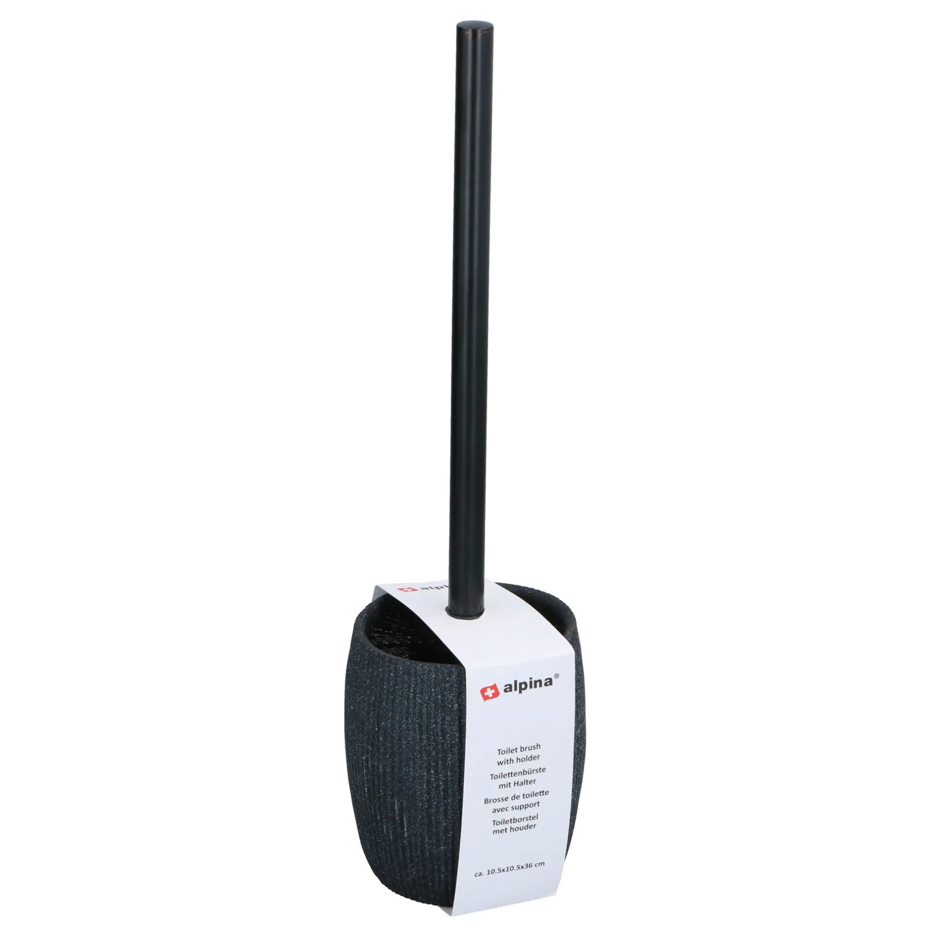 Matzwarte wc-borstel met kunststof houder, houdt toilet schoon en helpt bij het beheersen van ongewenste geuren.