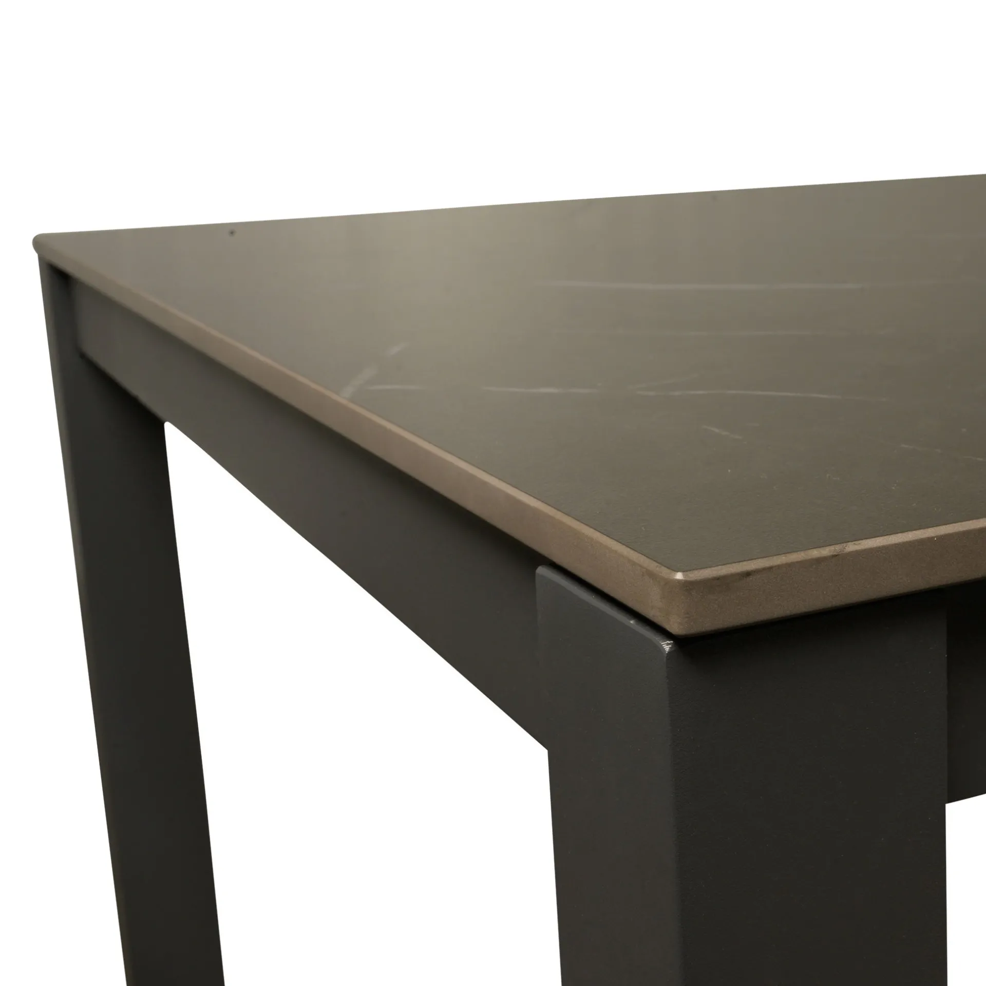 De tafel is een moderne en stijlvolle keuze voor zowel binnen als buiten. Het versterkte aluminium frame zorgt voor extra stabiliteit en is volledig roestvrij, terwijl het keramische blad een stevige, krasbestendige en onderhoudsvriendelijke afwerking biedt. De antracietkleur geeft de tafel een eigentijdse uitstraling die moeiteloos past in diverse interieur- en tuinsettings.