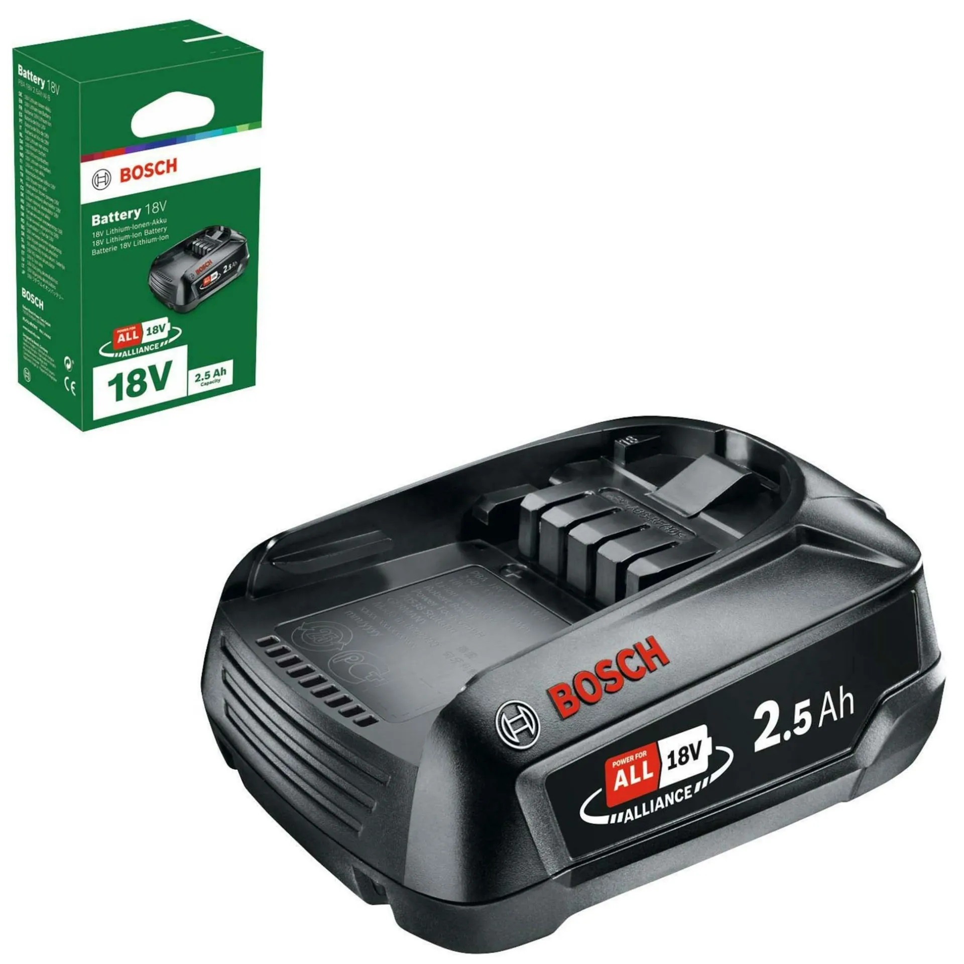 Deze accu is ontworpen voor gebruik met Bosch-gereedschappen die zonder accu worden geleverd. Hij heeft een capaciteit van 2,5Ah en een spanning van 18V, wat zorgt voor langdurig gebruik van het gereedschap zonder frequent opladen. De accu biedt hoge prestaties en duurzaamheid, wat het een ideale keuze maakt voor zowel professionals als hobbyisten.
