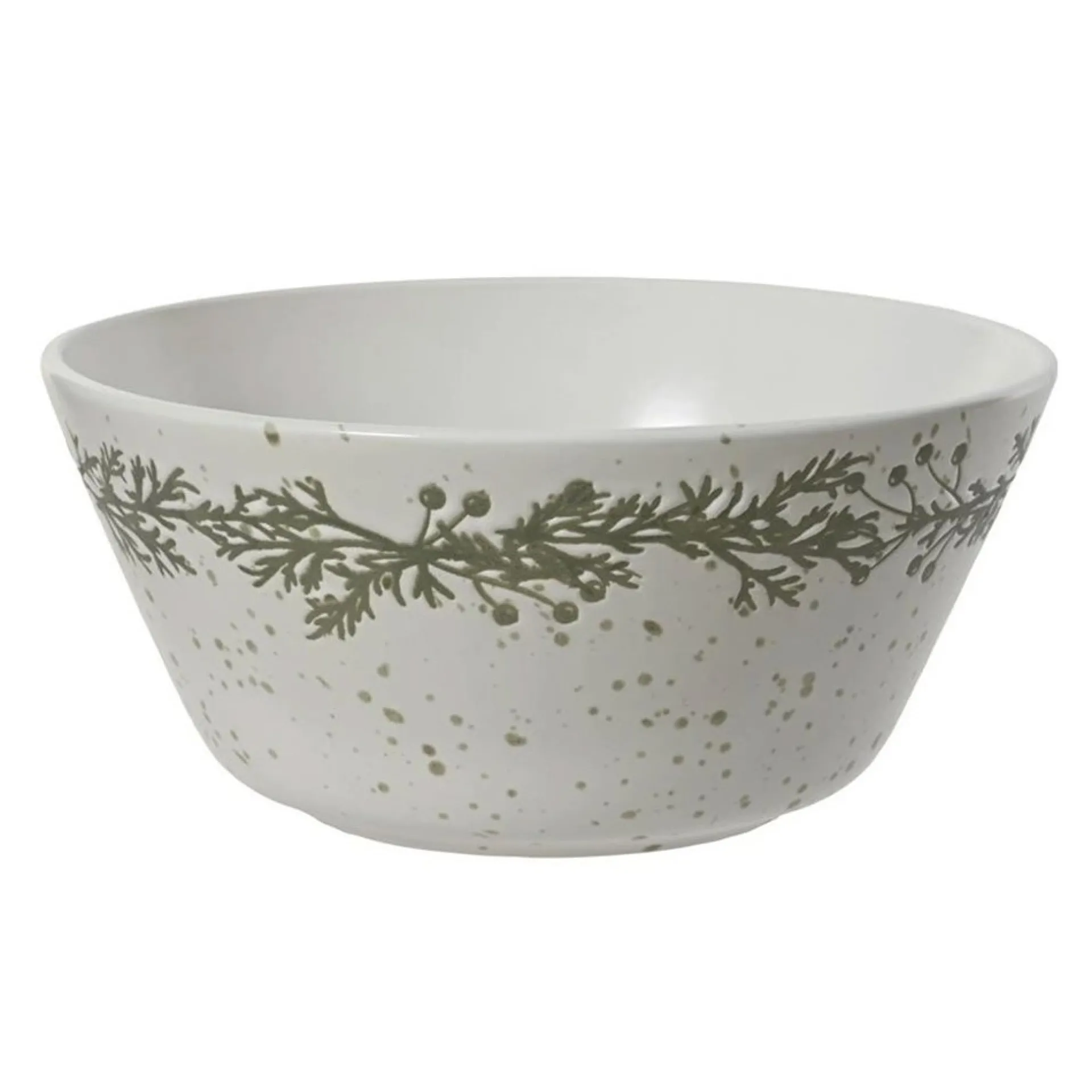 Kom Wreath met een diameter van 15 cm. Versierd met een subtiel groen takjesmotief, perfect voor een natuurlijke en feestelijke tafelsetting.