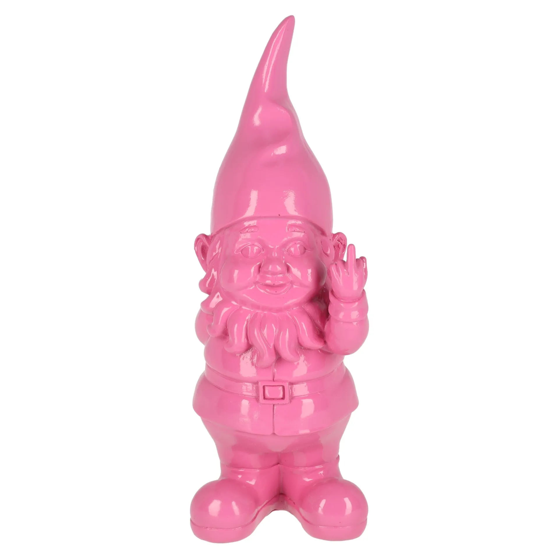 Vrolijke kabouter in een opvallende fuchsiakleur. Gemaakt van stevig kunststof met een glanzende afwerking. Een speelse blikvanger voor binnen of buiten.