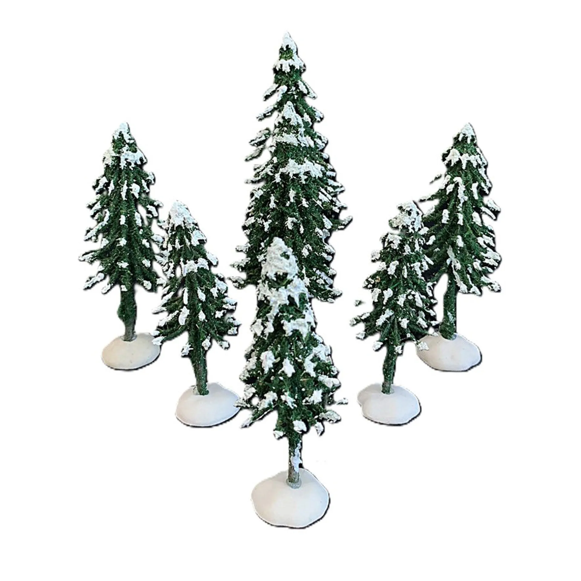 Set met besneeuwde dennenbomen, ideaal als decoratie voor een kerstdorp. De verschillende hoogtes zorgen voor een natuurlijk winters landschap en maken je miniatuurdorp extra sfeervol.