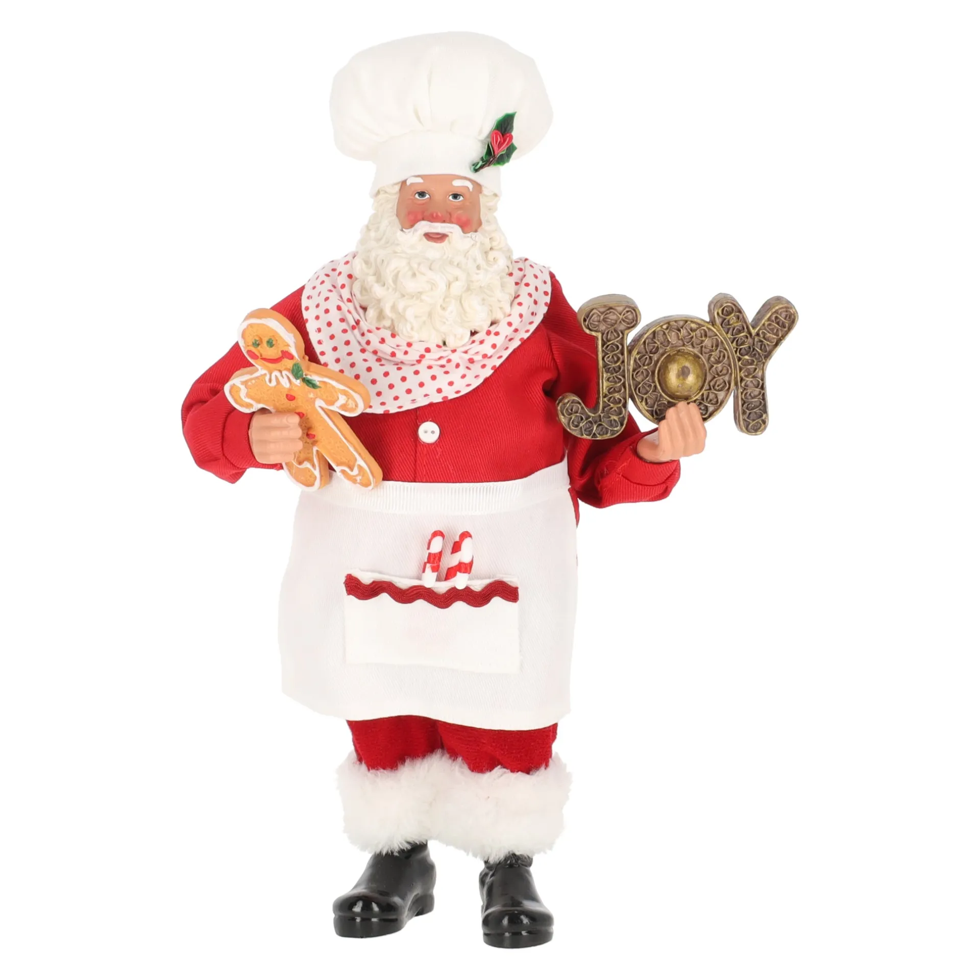 Deze gezellige kerstman brengt een vrolijke sfeer in huis. Gekleed als bakker met een witte koksmuts en schort, houdt hij een grote ‘JOY’-tekst vast en een vrolijk gingerbread-mannetje in de hand. Een leuke decoratie voor op tafel, de schouw of vensterbank tijdens de feestdagen.