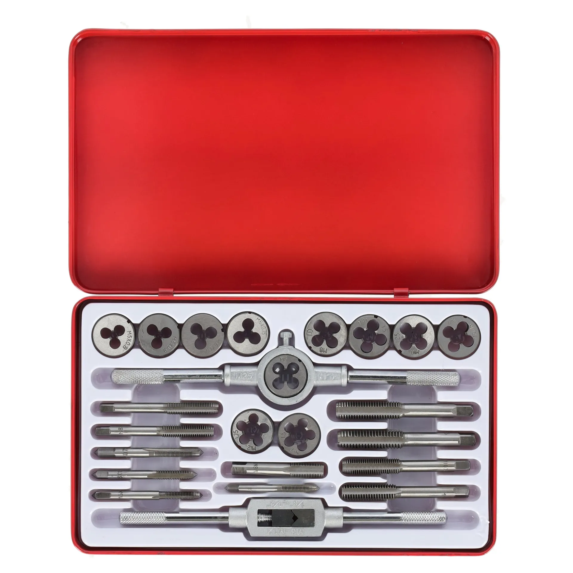 De Lotus Draadtapset, bestaande uit 24 tappen, is ideaal voor het snijden of herstellen van schroefdraad in metaal. Met verschillende diameters en schroefdraadafstanden is deze set een veelzijdige keuze voor professioneel en huishoudelijk gebruik.