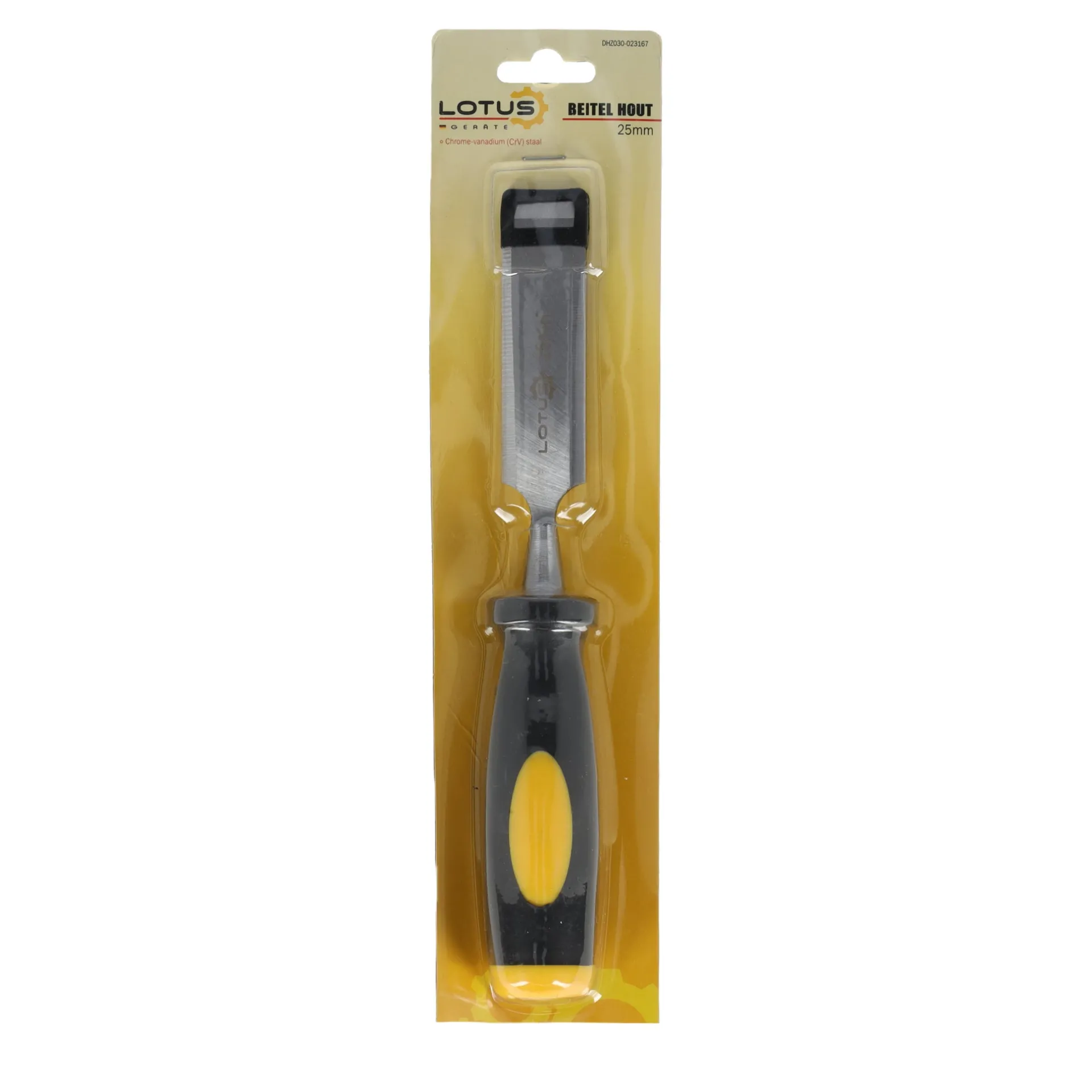 De Lotus houtbeitel van 25 mm breed is een betrouwbare keuze voor grotere houtprojecten. Het geharde blad en het comfortabele handvat maken het werken aangenaam.