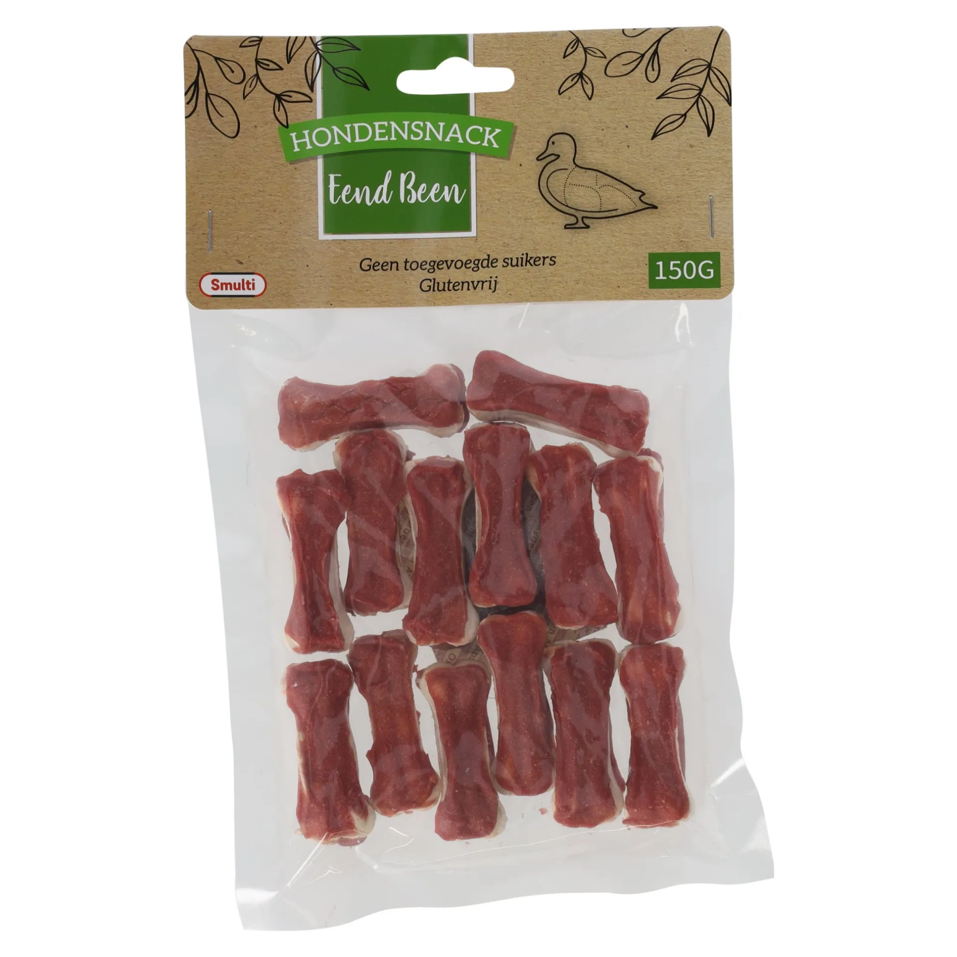 De snack been eend is een smakelijke en natuurlijke kauwsnack voor honden, gemaakt van een stevig bot omwikkeld met heerlijke stukjes eendenvlees. Deze snack biedt langdurig kauwplezier en helpt bij het ondersteunen van de mondgezondheid door het reinigen van het gebit en het verminderen van tandplak en tandsteen. Het eendenvlees voegt een unieke en onweerstaanbare smaak toe die honden graag eten, en het bot is een natuurlijke bron van eiwitten en mineralen. Geschikt voor honden van alle rassen en leeftijden die houden van een stevige en smaakvolle kauwsnack. Een gezonde en heerlijke traktatie voor kauwliefhebbers! Laat de hond niet alleen met kauwmateriaal. Zorg voor vers water.