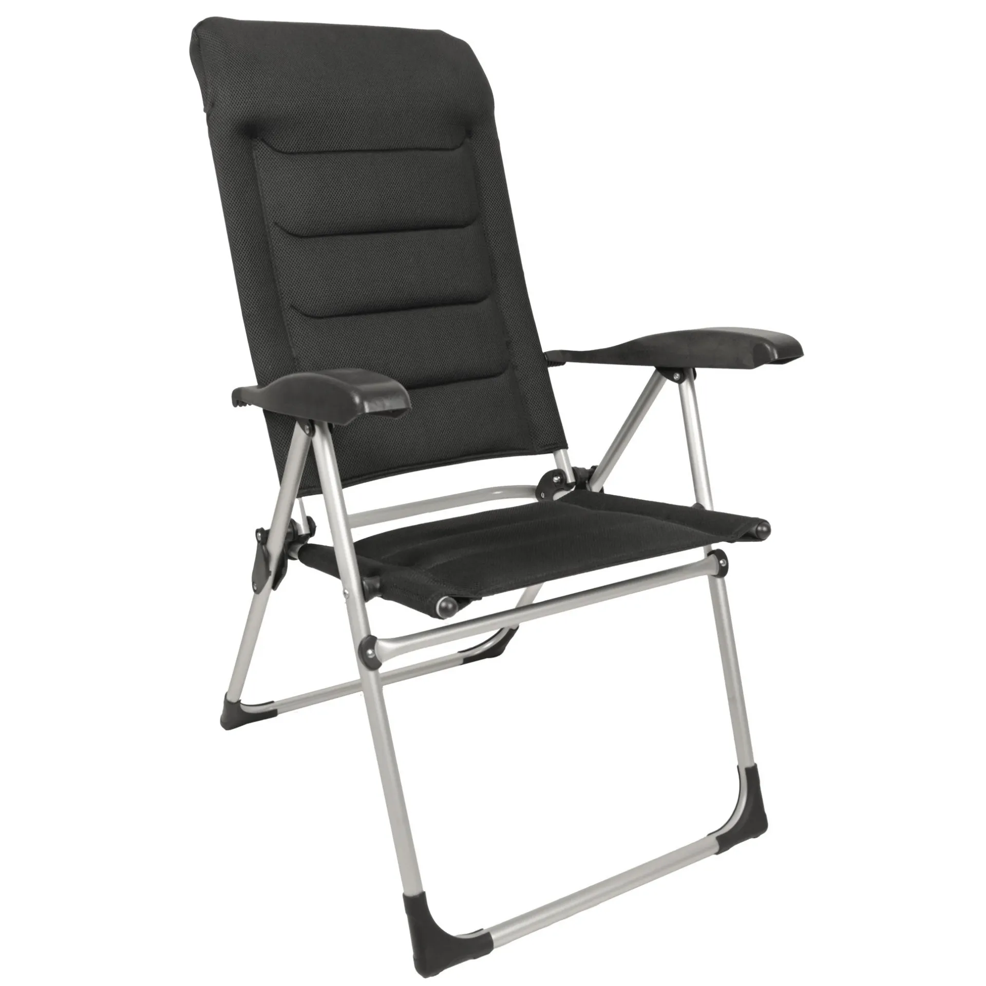 De Stoel Fuente in aluminium en zwart biedt optimaal comfort met een verstelbare rugleuning, gevoerde rug en zitting. Het stevige aluminium frame zorgt voor duurzaamheid, terwijl het compacte, opvouwbare ontwerp het gemakkelijk maakt om de stoel op te bergen of mee te nemen. Perfect voor zowel binnen als buiten.