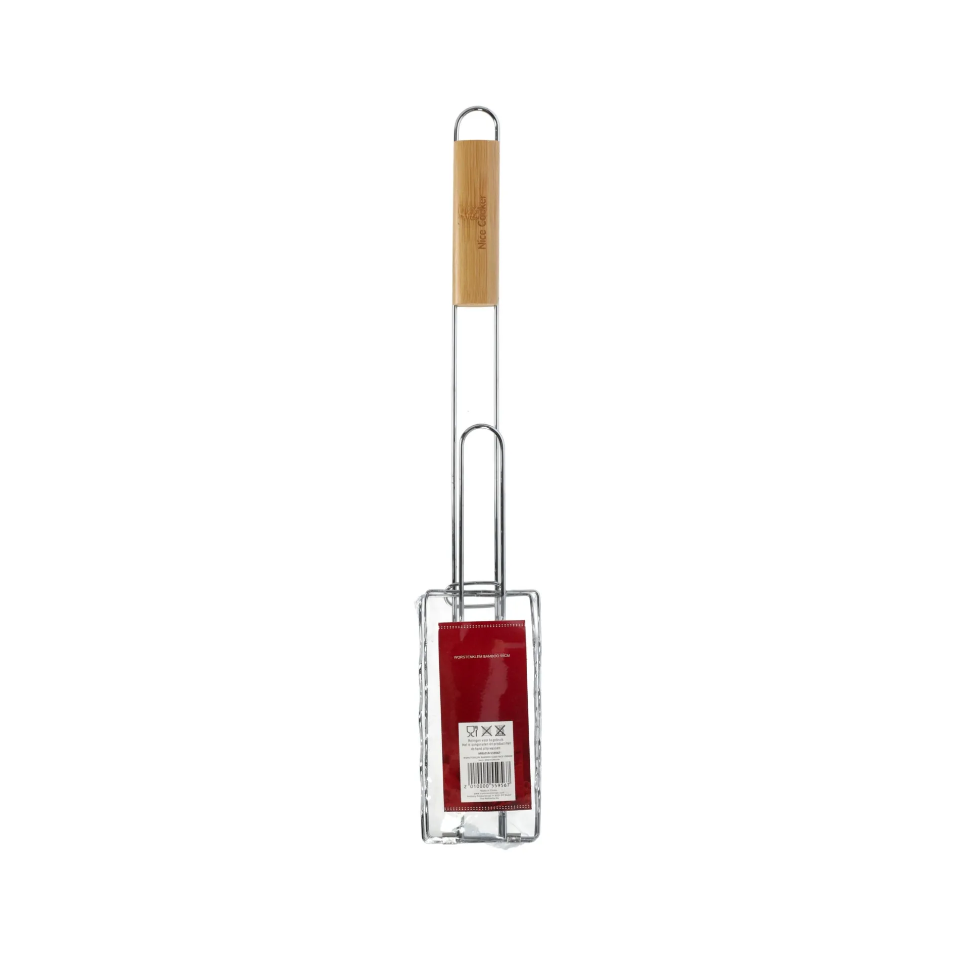 De worstenklem bamboo is een handige en praktische tool, perfect voor het veilig vasthouden van worsten tijdens het grillen of koken. Met een lengte van 55 cm biedt hij voldoende bereik om worsten eenvoudig te draaien of te verplaatsen zonder je handen te verbranden.