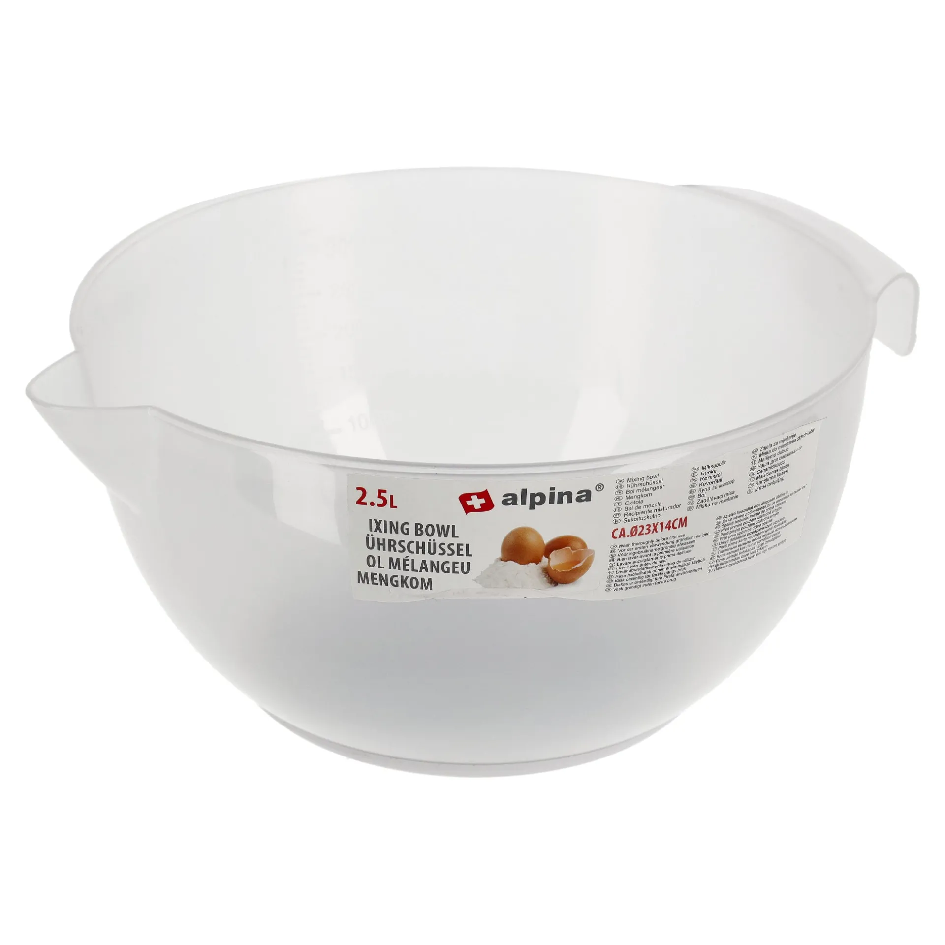 De Alpina mengkom met een diameter van 23 cm en een hoogte van 14 cm is een onmisbaar element in iedere keuken. Het is gemaakt van hoogwaardige materialen en zorgt voor duurzaamheid en weerstand tegen beschadiging. Perfect voor het mixen van deeg, slagroom of het bereiden van salades.