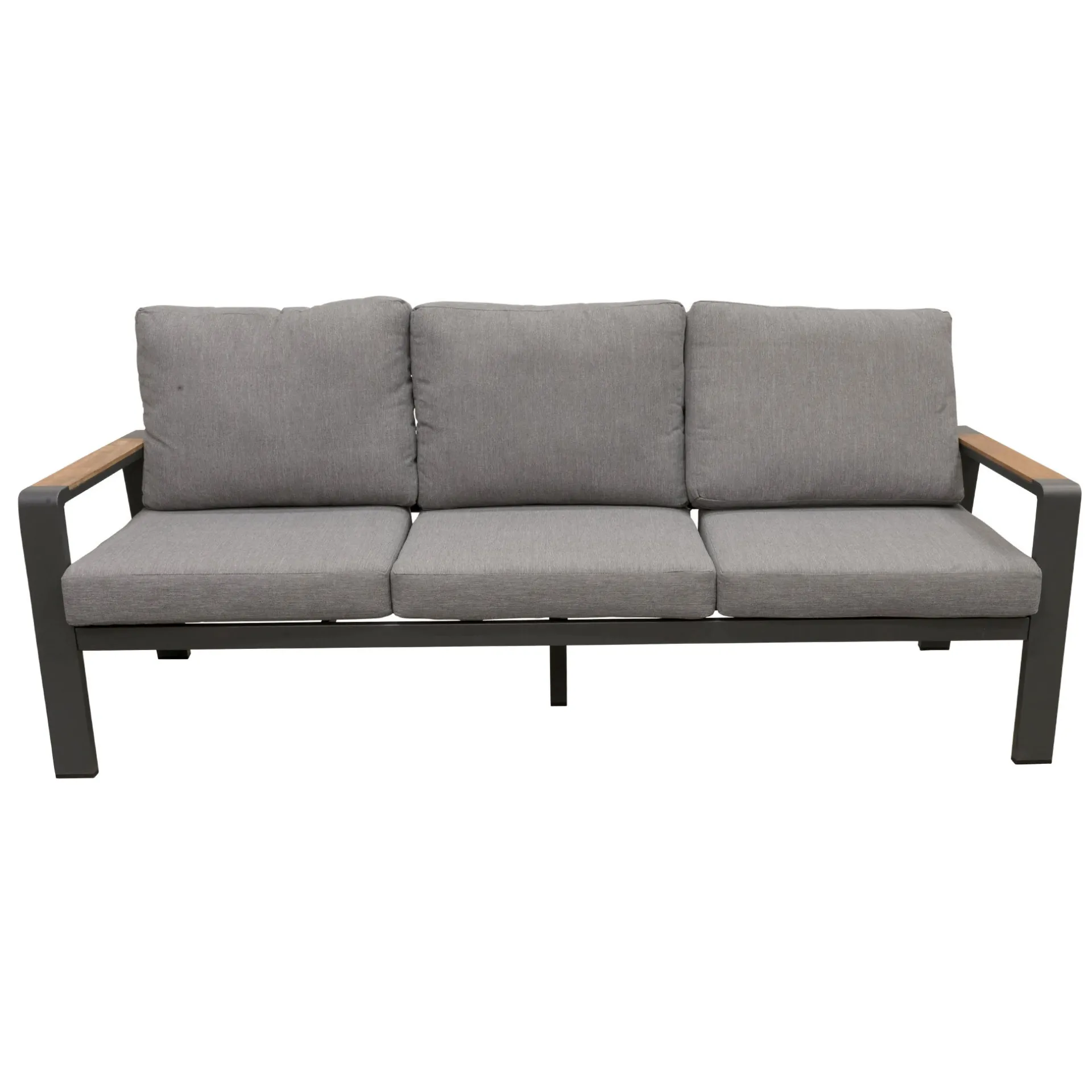 De Salvo bank met 3-zit is een moderne en comfortabele bank die een stijlvolle uitstraling heeft. De antracietkleur zorgt voor een verfijnde uitstraling die makkelijk te combineren is met diverse stijlen. De bank heeft een aluminium frame dat bestand is tegen weersomstandigheden. De bank biedt uitstekend zitcomfort door de zachte kussens.