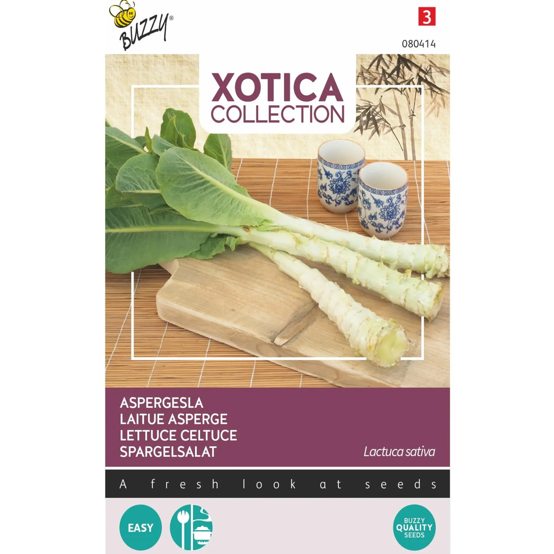 Aspergesla zaad levert een snelgroeiende bladgroente waarvan vooral de dikke bladstelen worden gegeten. De planten vormen lange, stevige stelen met groene bladeren. De smaak is fris en licht bitter. Geschikt voor zowel rauwe bereiding als korte verhitting.