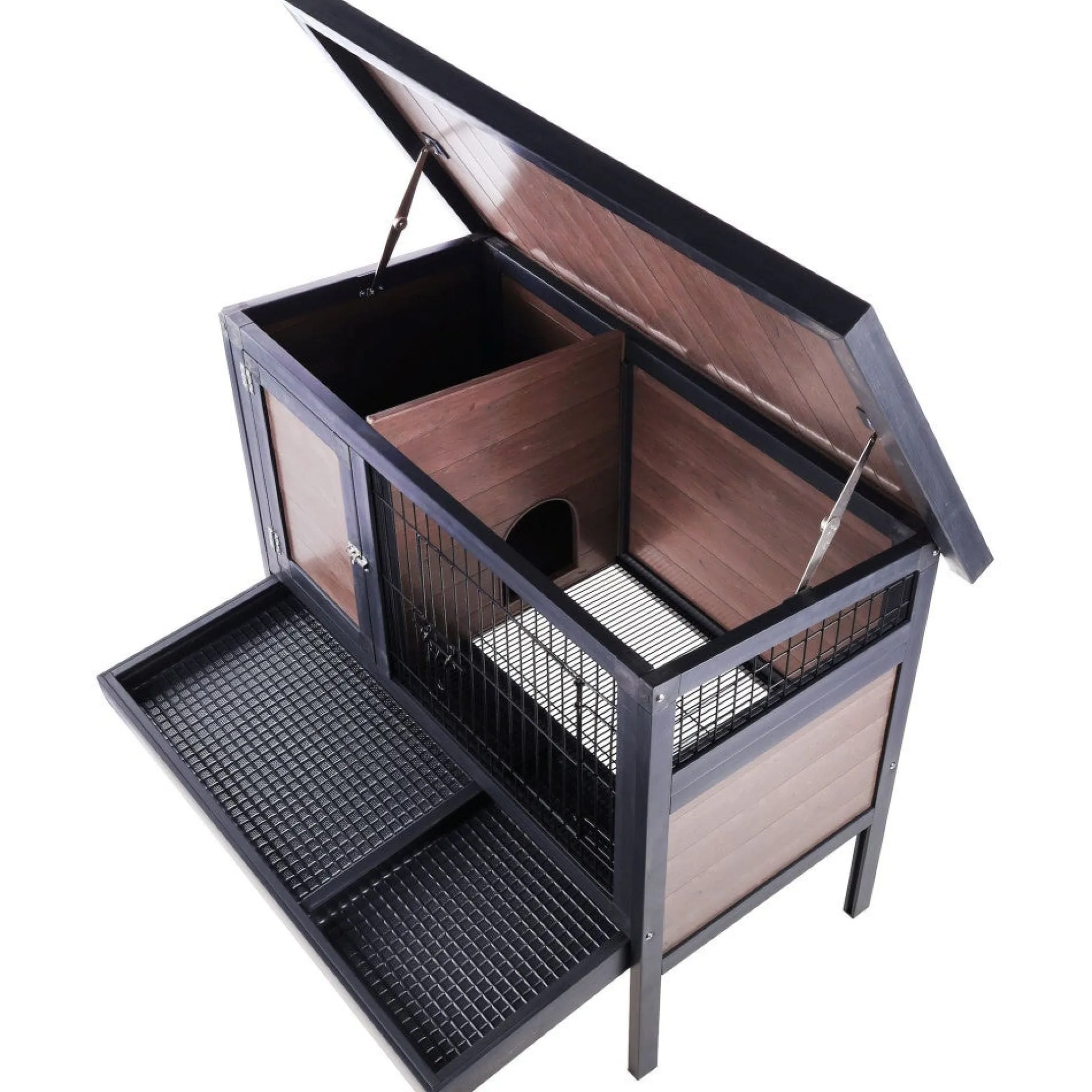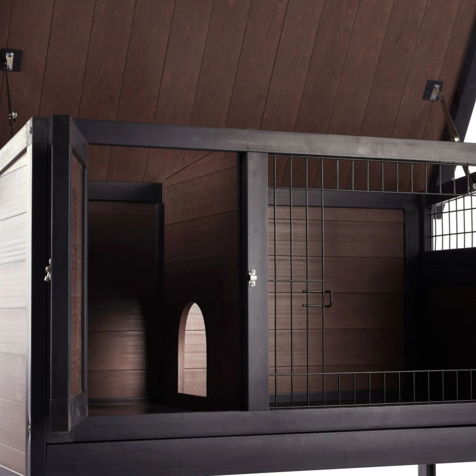Dit stijlvolle kunststof konijnenhok is ideaal in gebruik. Door de schoonmaaklade en het gebruik van kunststof is het konijnenhok zeer makkelijk schoon te houden. Dit is natuurlijk makkelijk voor jezelf, maar ook zeer goed voor de gezondheid van het konijn. Het konijnenhok is voorzien van een open te klappen dak en beschikt over meerdere deurtjes voor goede toegang. Het konijnenhok heeft een donkere, stijlvolle kleur. Hierdoor is het beter om het hok niet in de directe zon te plaatsen, maar onder bijvoorbeeld een overkapping.