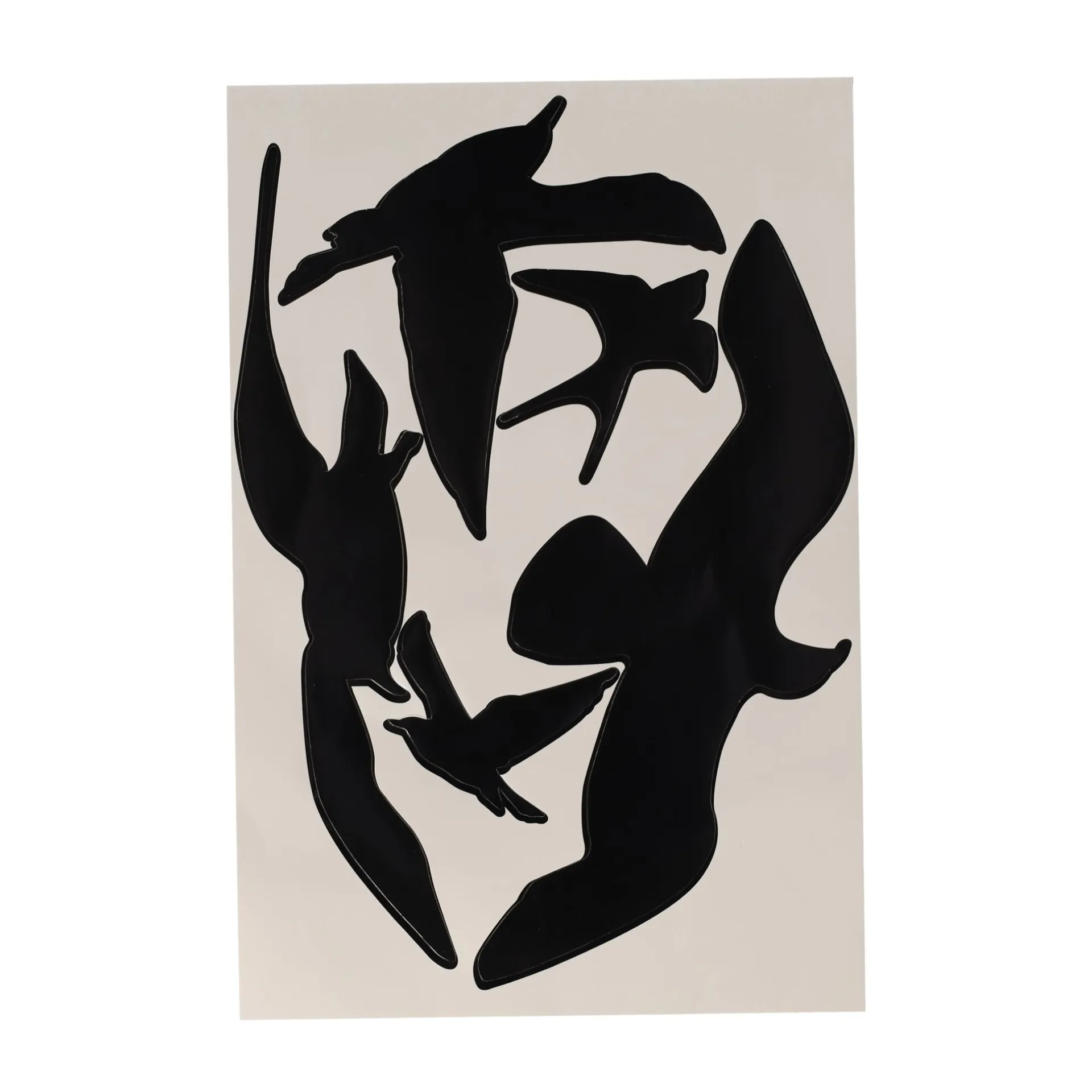Vogelsilhouetten zijn decoratieve vormen die vaak worden gebruikt om ramen en muren te versieren of als waarschuwingssignalen om botsingen met glas te voorkomen. Ze zijn eenvoudig aan te brengen en verwijderen en dienen als een effectieve en esthetische toevoeging in huis, tuin of op werkplekken.