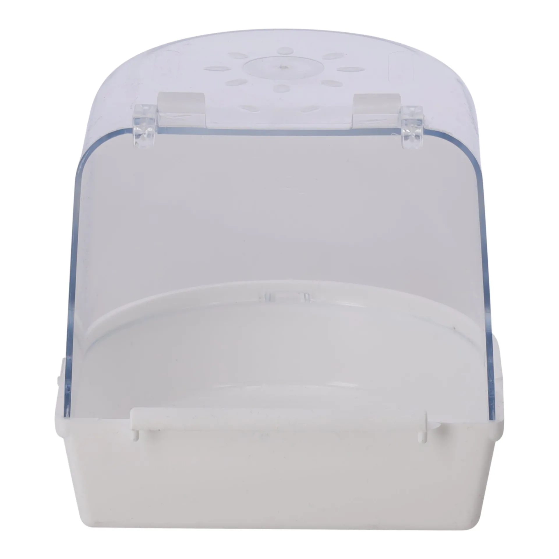 Vogels genieten van een fijn bad! Dit ruime witte badhuis voor een rechte kooi biedt volop badplezier. De transparante kap voorkomt spetteren en houdt het water netjes binnen. Het badje is eenvoudig aan de kooi te bevestigen.