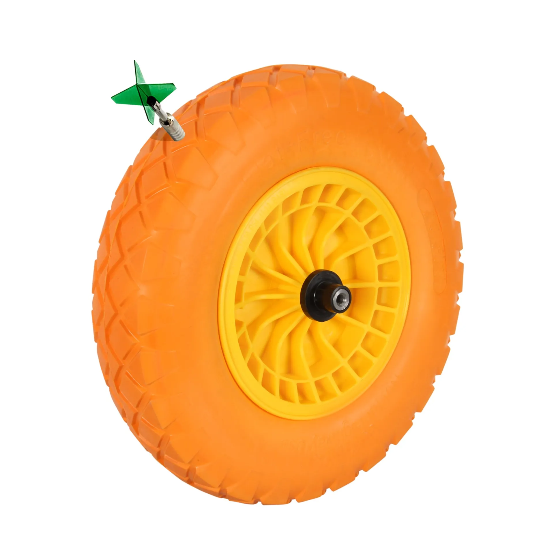 Het kruiwagenwiel is gemaakt van massief PU-rubber. Hierdoor heb je geen last meer van lekke banden en is het niet nodig om de band bij te vullen met lucht. PU is een stevig materiaal met kleine poriƫn dat zich aan het oppervlak verdicht en zo een lekbestendige laag vormt.