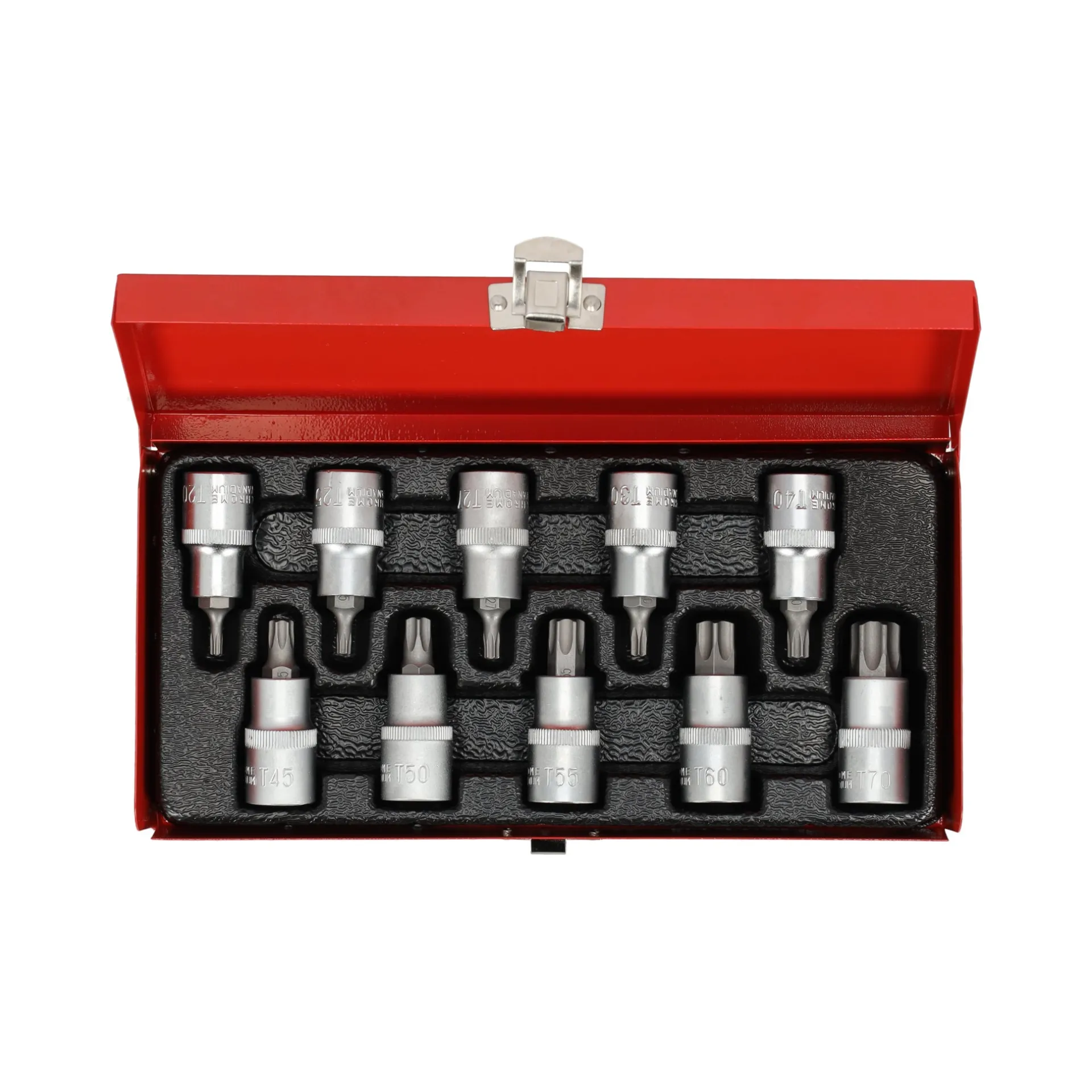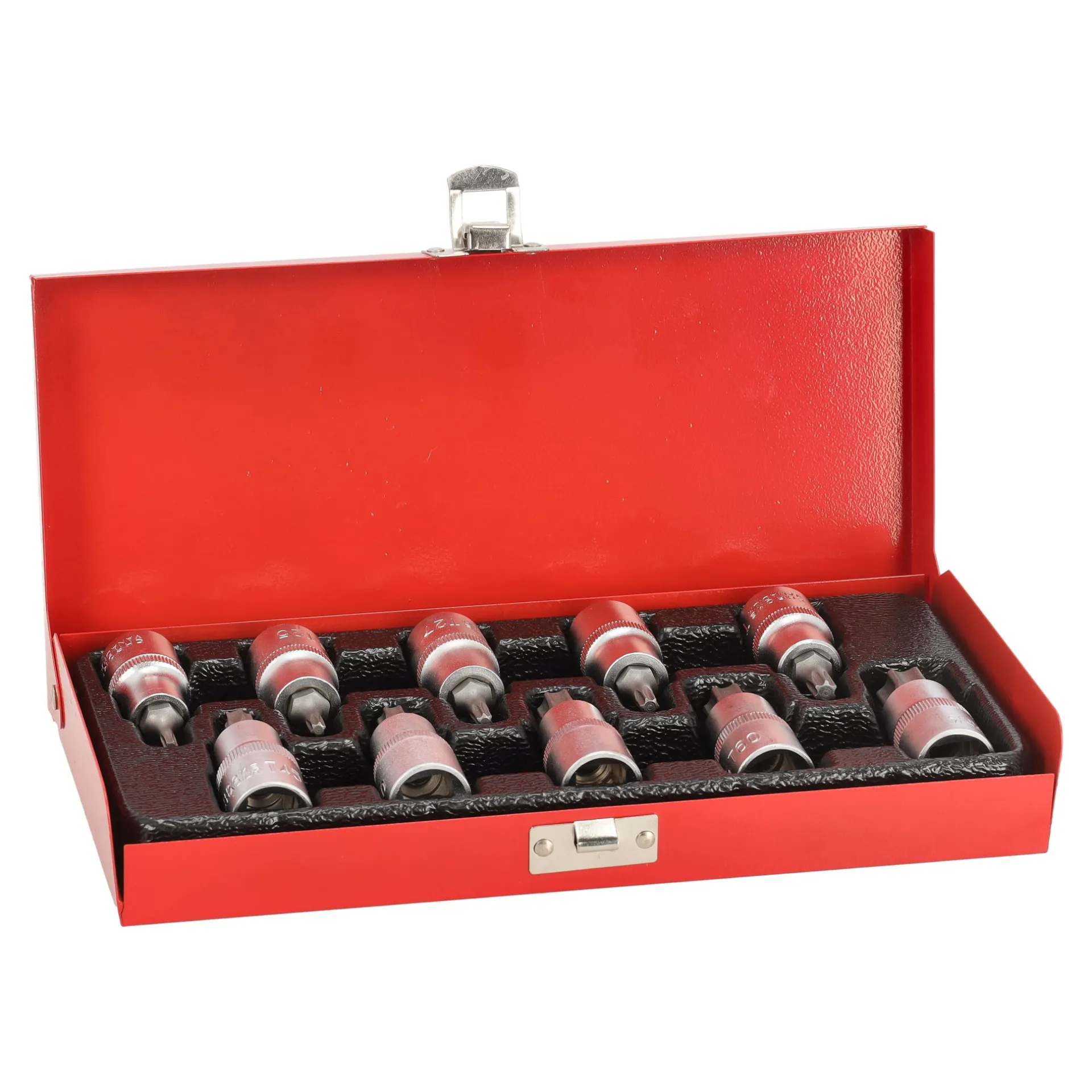 Een betrouwbare tool voor het werken met Torx-bevestigingen bij diverse reparatie- en montagetaken. Gemaakt van sterk staal voor duurzaamheid en slijtvastheid. De set bevat 10 doppen in verschillende maten, waardoor het een veelzijdige keuze is voor zowel professioneel als thuisgebruik.
