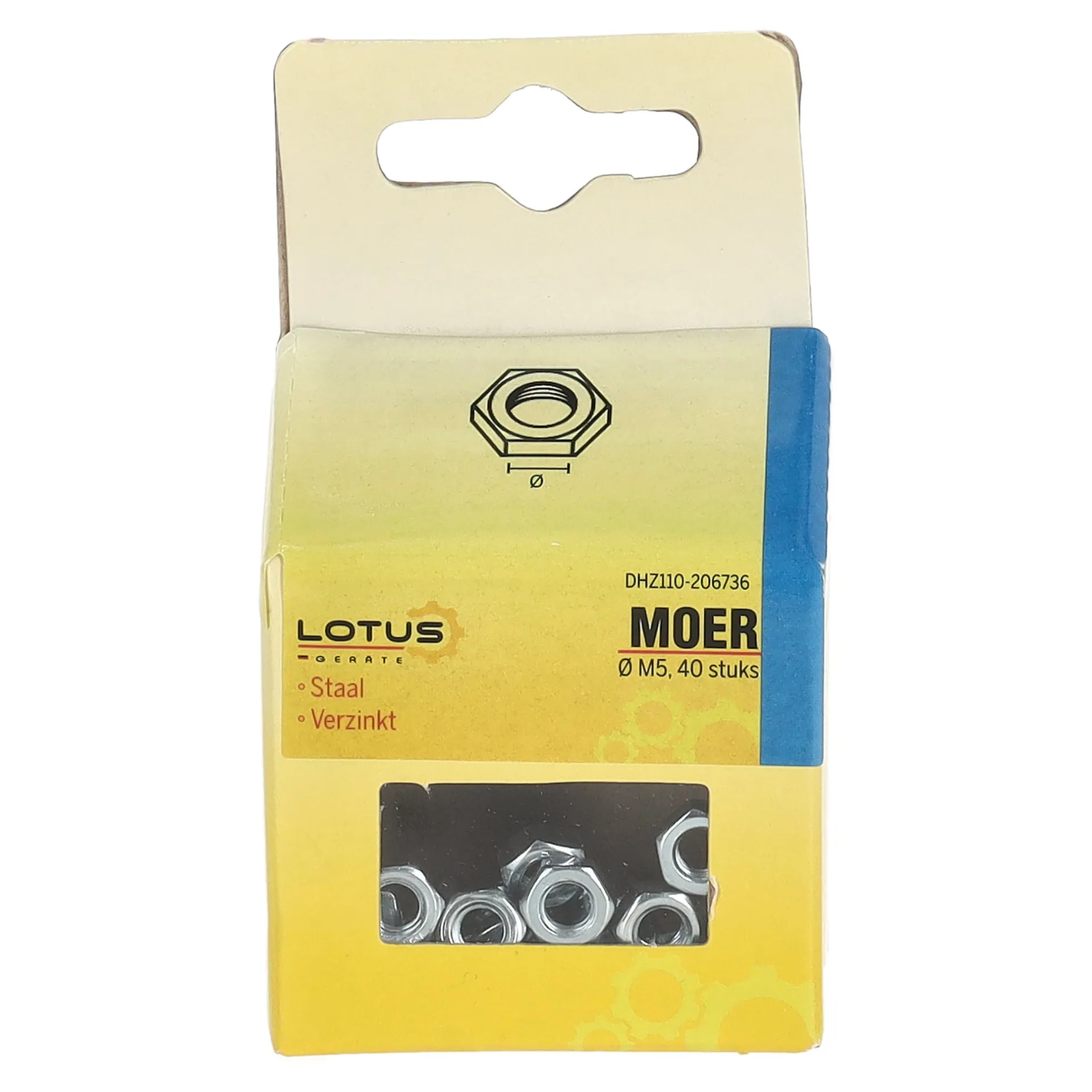 M5 verzinkte moeren, 40 stuks, van Lotus. De moeren hebben een standaard metrische schroefdraad en een zeskantige vorm en zijn geschikt voor talloze toepassingen in huis of industrie.