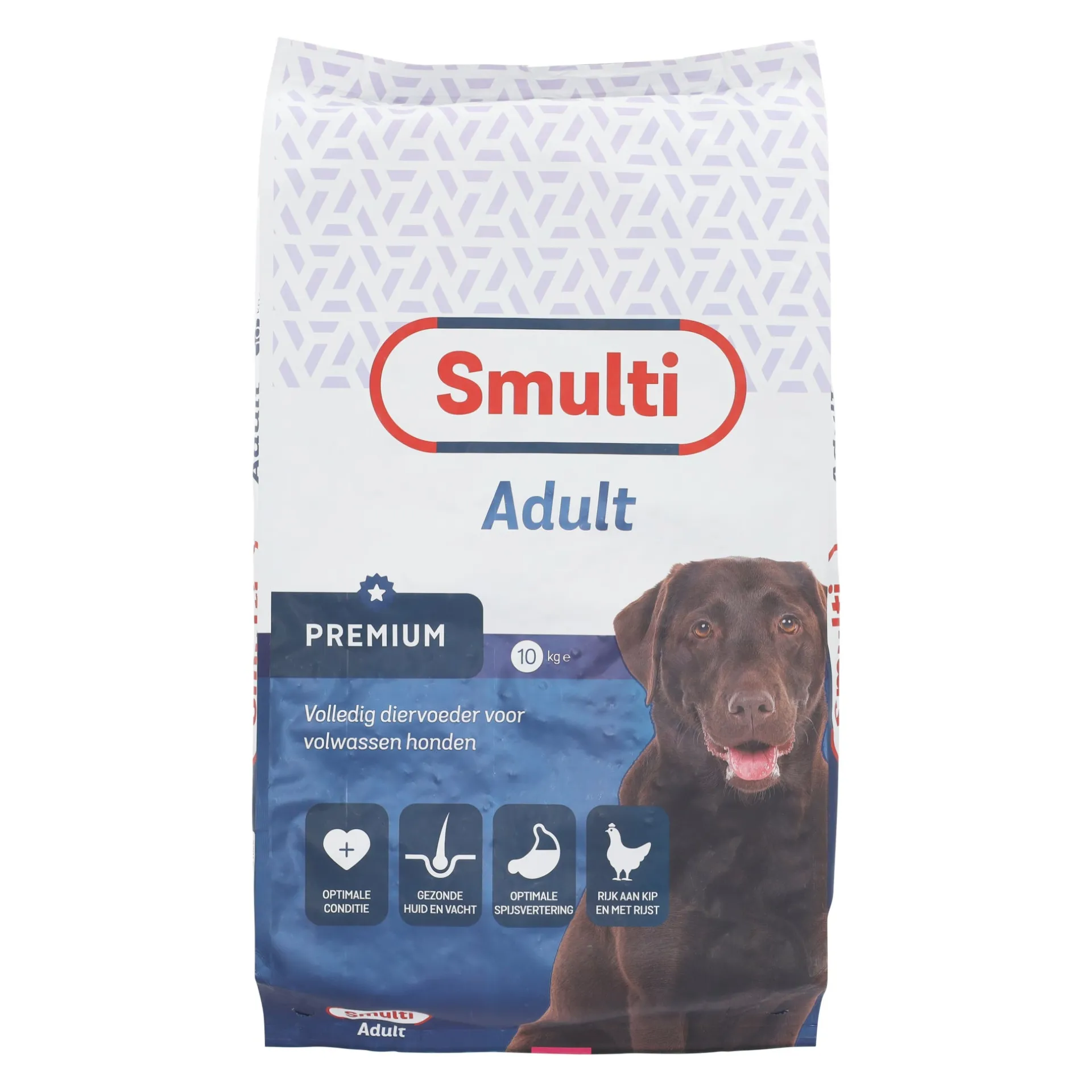Smulti Premium Adult is een complete, smakelijke en licht verteerbare voeding. De uitgebalanceerde samenstelling bevat alle benodigde voedingsstoffen en bouwstoffen voor een optimale conditie van uw hond. Smulti Premium Adult bevat veel kip, een goede bron van eiwitten. Deze brok is geschikt voor volwassen honden van alle rassen en bevat meer energie dan standaard hondenvoeding.