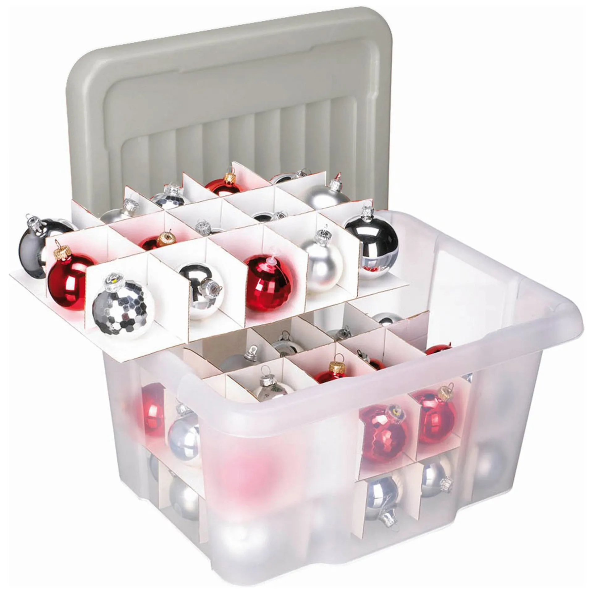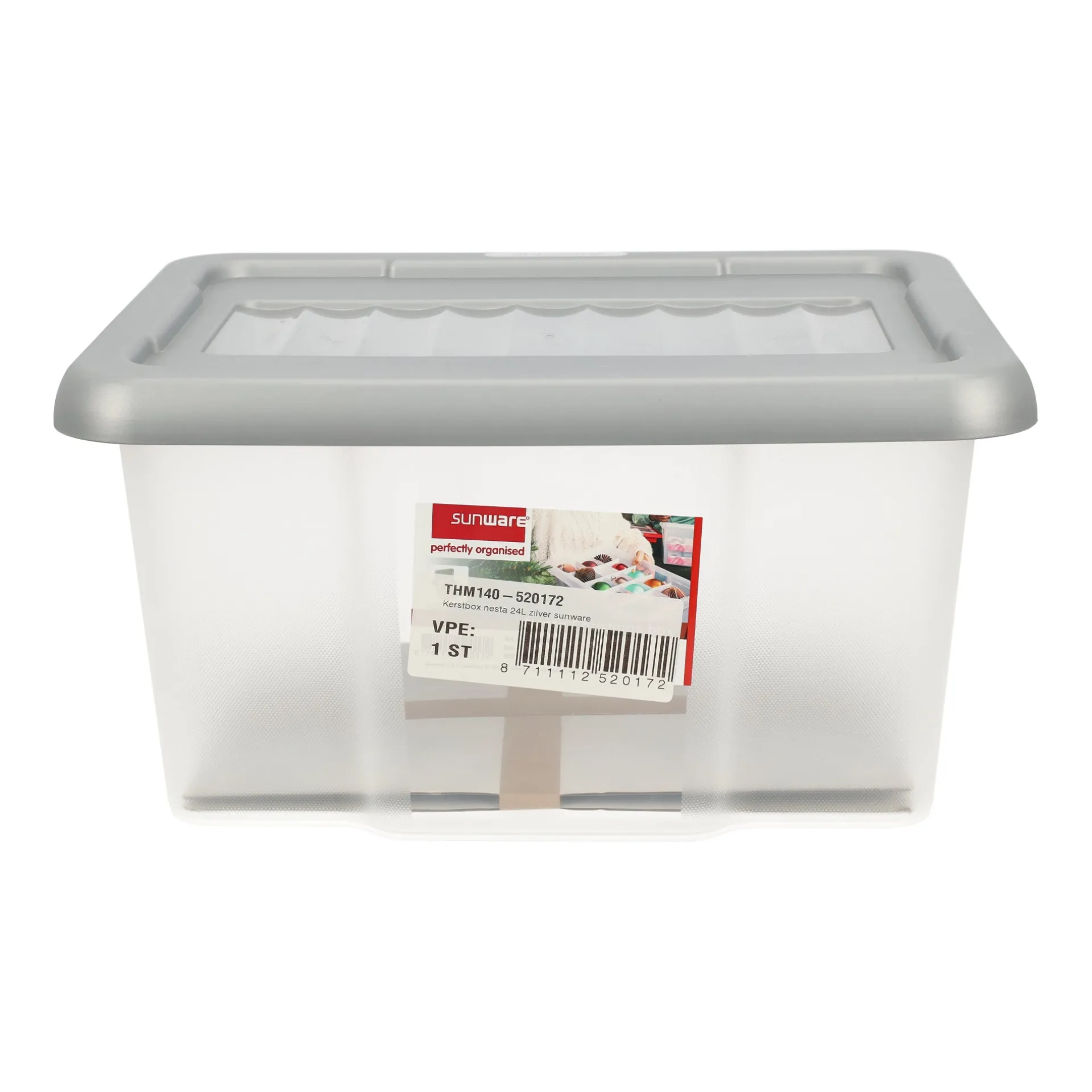 Met deze handige Sunware Nesta opbergbox berg je kerstdecoratie netjes en stofvrij op. De box heeft een inhoud van 24 liter en is voorzien van een stevige, afsluitbare deksel in zilverkleur. Ideaal voor het bewaren van kerstballen, lichtsnoeren of andere versiering. Dankzij het transparante kunststof zie je in ƩƩn oogopslag wat erin zit.
