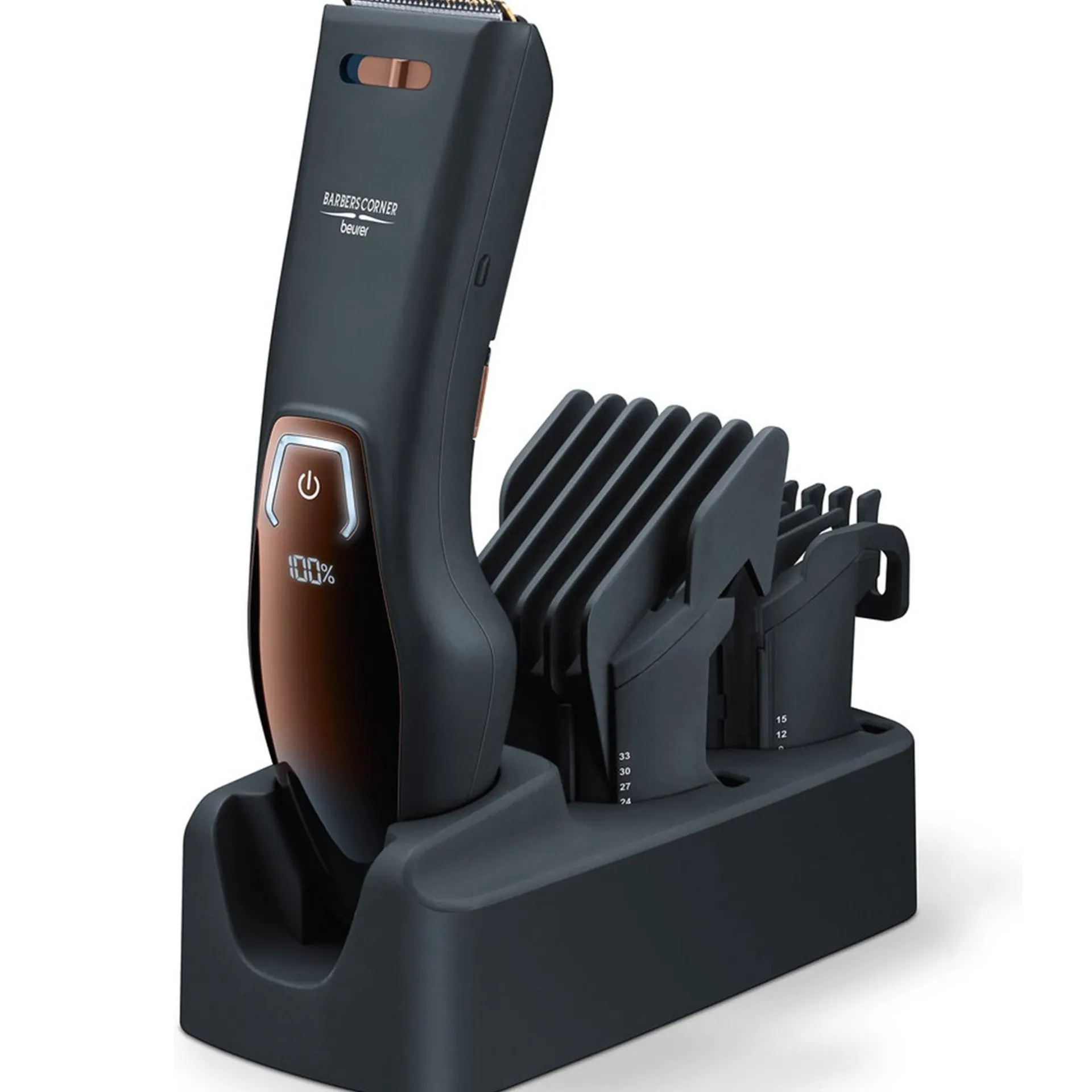 De Barbers Corner Tondeuse HR5000 van Beurer is een professionele haartrimmer die perfect is voor zowel thuisgebruik als in de kapperszaak. Deze hoogwaardige tondeuse is uitgerust met roestvrijstalen messen voorzien van een titanium coating, wat zorgt voor een nauwkeurige en duurzame snijprestatie.