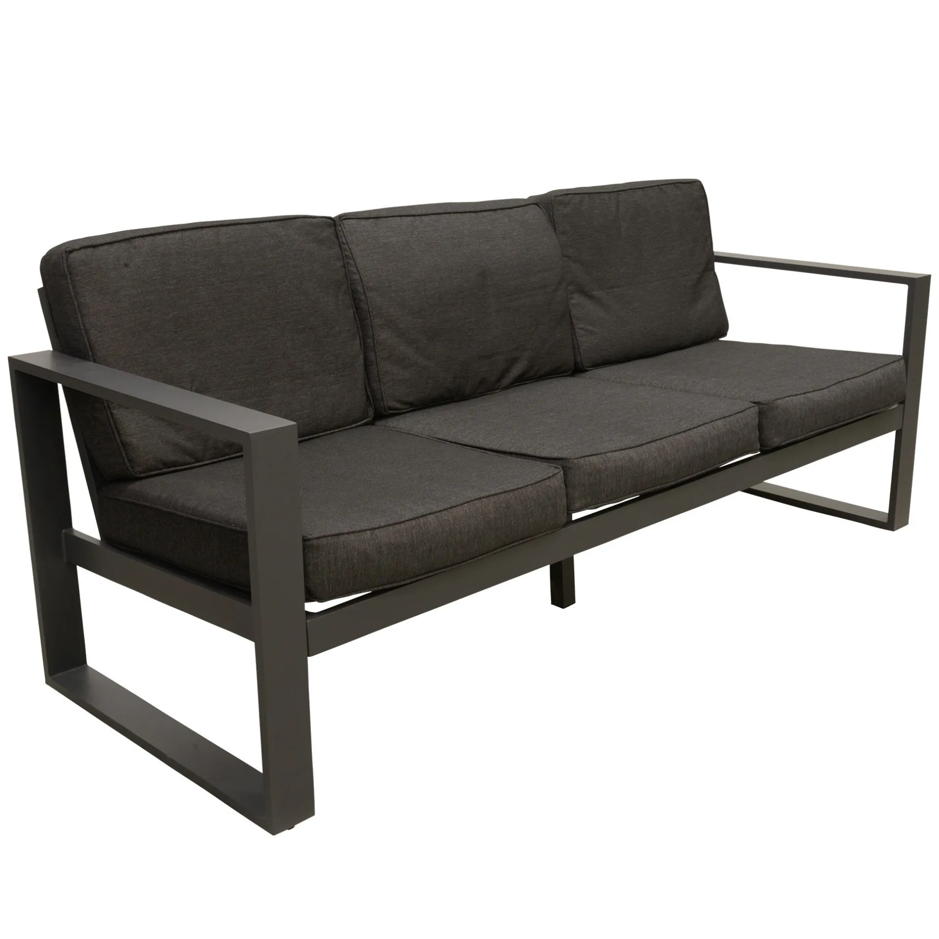 De Lucito bank in antraciet heeft een strak en modern ontwerp, perfect voor je tuin, terras of balkon. Het aluminium frame is stevig en roestbestendig, waardoor de bank ideaal is voor buiten. De antracietkleur geeft de bank een eigentijdse uitstraling die goed samengaat met verschillende tuinmeubelen. De zit- en rugkussens zorgen voor een aangenaam comfort.
