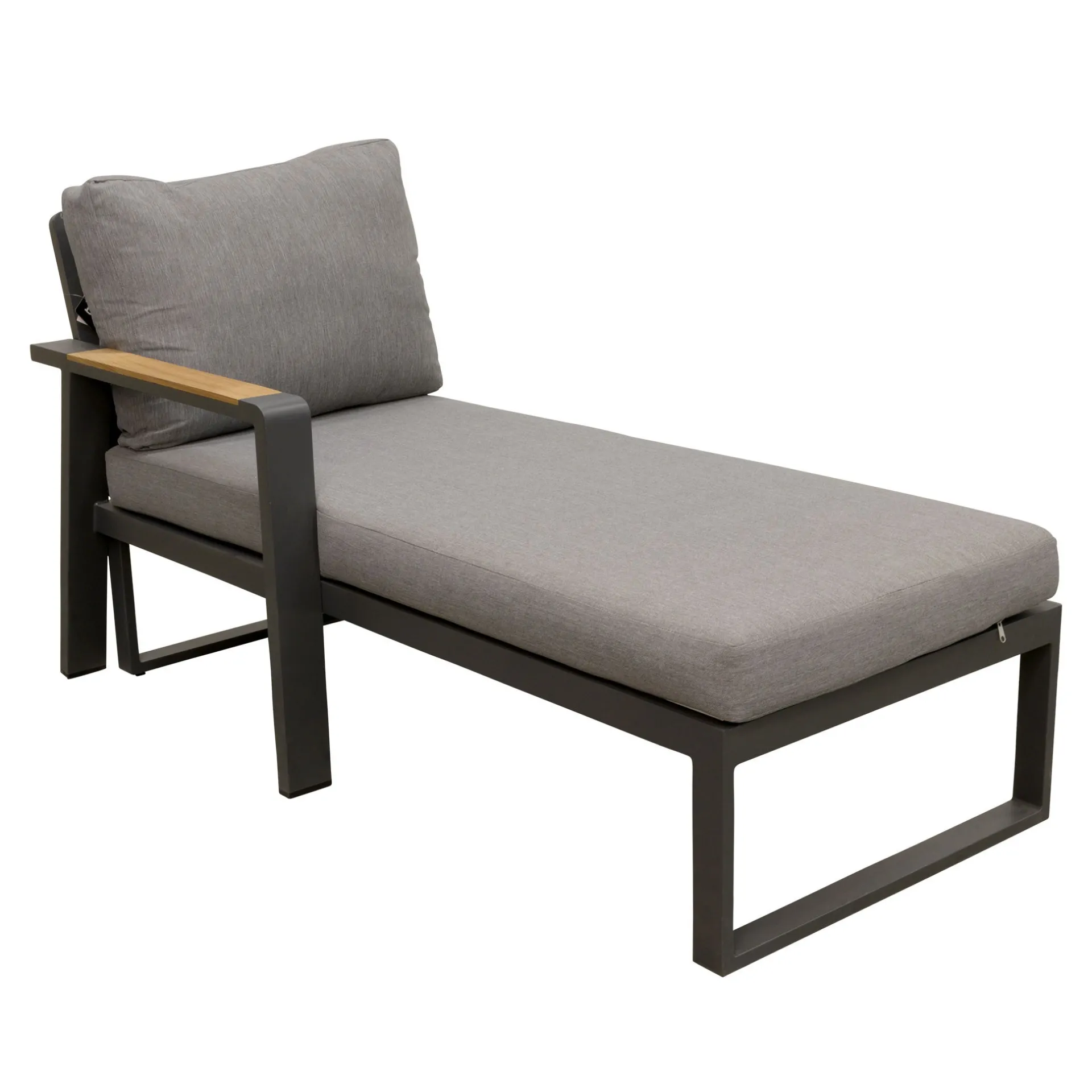 De Salvo bank lounge is een moderne en comfortabele bank die een stijlvolle uitstraling heeft. De antracietkleur zorgt voor een verfijnde uitstraling, die makkelijk te combineren is met diverse stijlen. Het lounge ontwerp biedt een ruime zitoppervlakte, waar ook de benen opgelegd kunnen worden. De bank heeft een aluminium frame dat bestand is tegen weersomstandigheden. De bank biedt uitstekend zitcomfort door de zachte kussens.