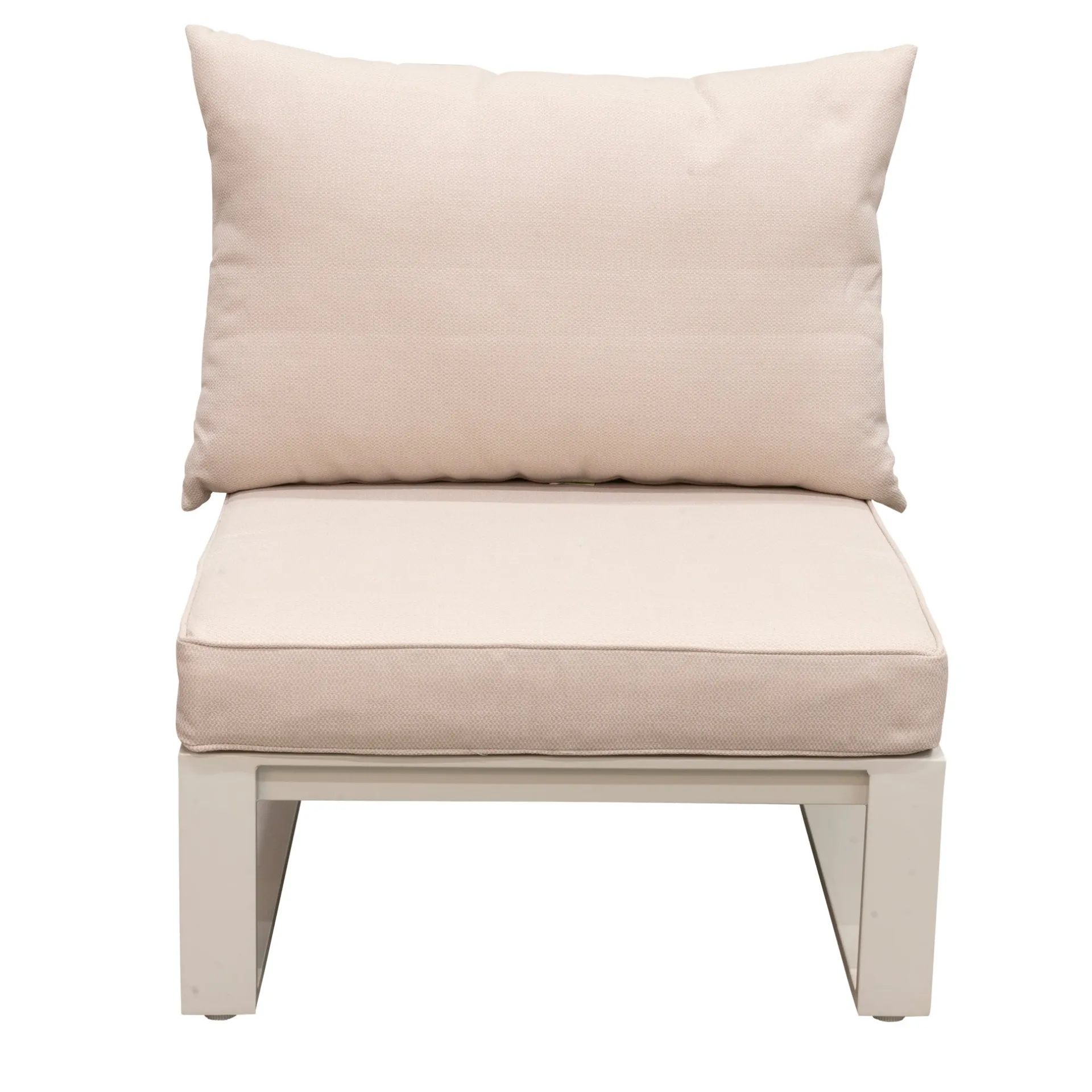 Het tussenstuk is de perfecte toevoeging aan je modulaire loungeset. Dit tussenstuk wordt geleverd met comfortabele kussens, waardoor je eenvoudig extra zitplaatsen creëert met dezelfde luxe uitstraling en comfort als de rest van je set. De kussens zijn zacht, ondersteunend en gemakkelijk te onderhouden, waardoor je het hele seizoen kunt genieten van ontspanning in je tuin of op je terras.