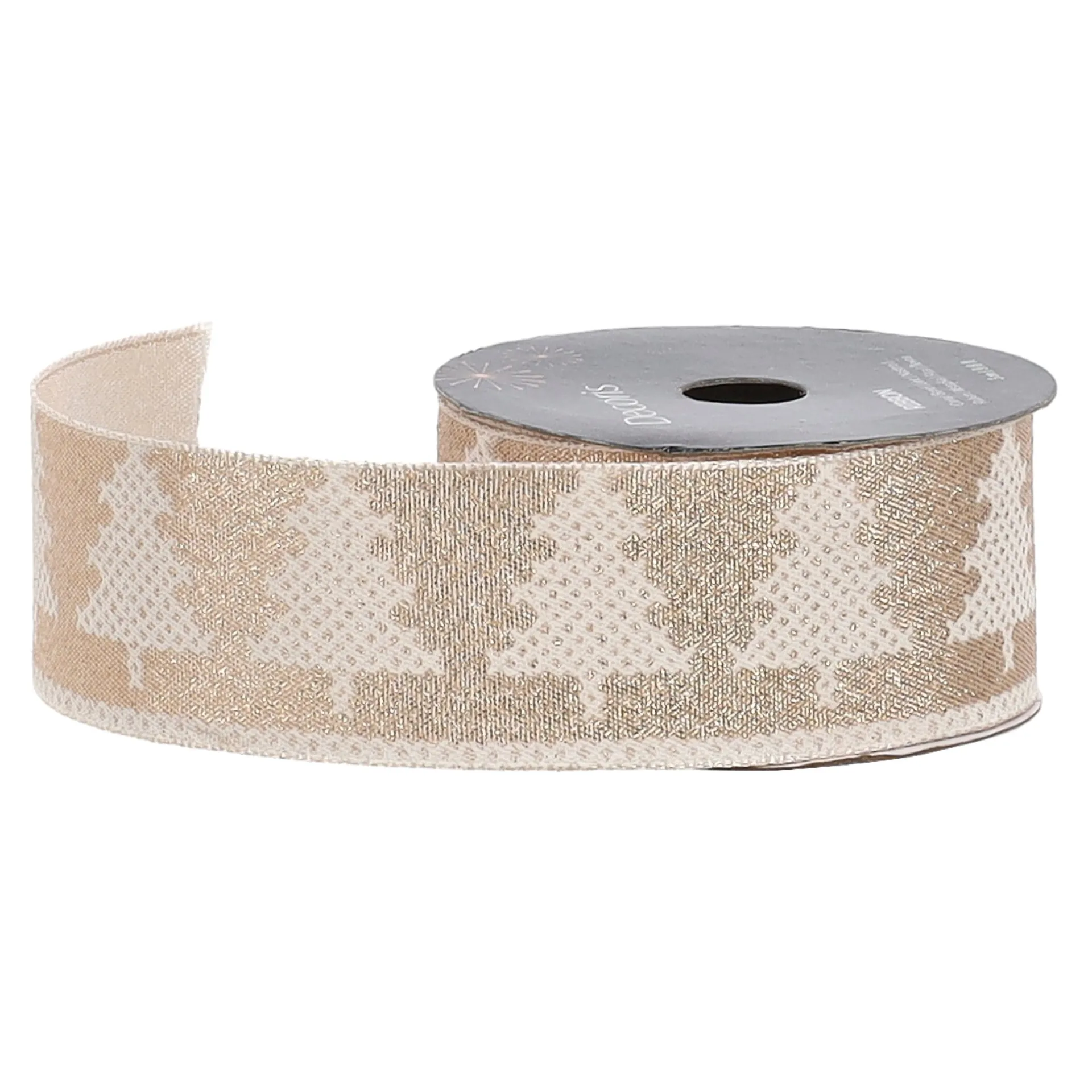 Vijf varianten van luxe linten in champagnekleuren met glinsterende details. Perfect voor het inpakken van cadeaus of het versieren van kerstdecoraties. De linten zijn gemaakt van stevig textiel en hebben een elegante, feestelijke uitstraling.