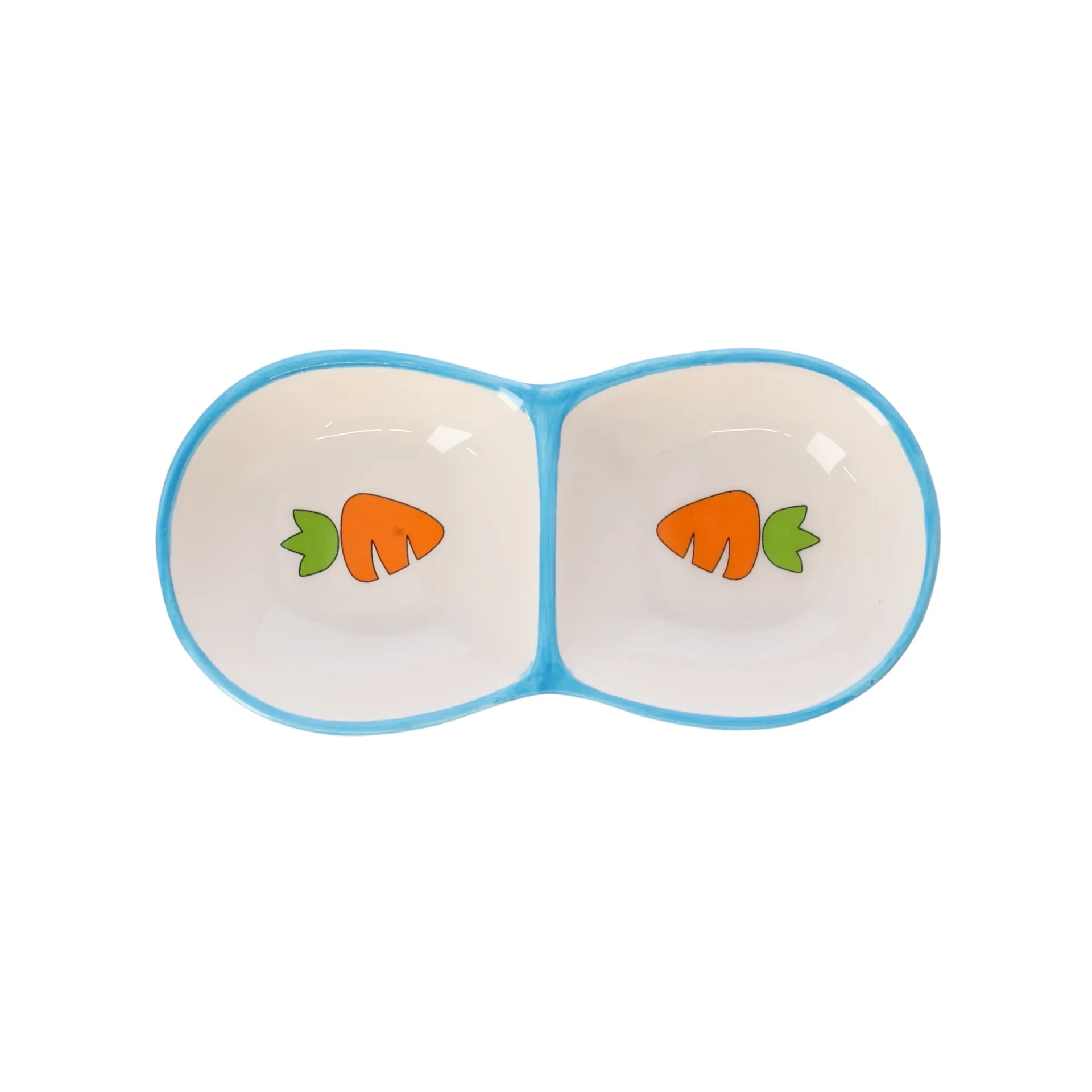 Online Friendly Pet Eetpot Knaagdier Ozzy Keramisch Dubbel Blauw 16x8x3cm