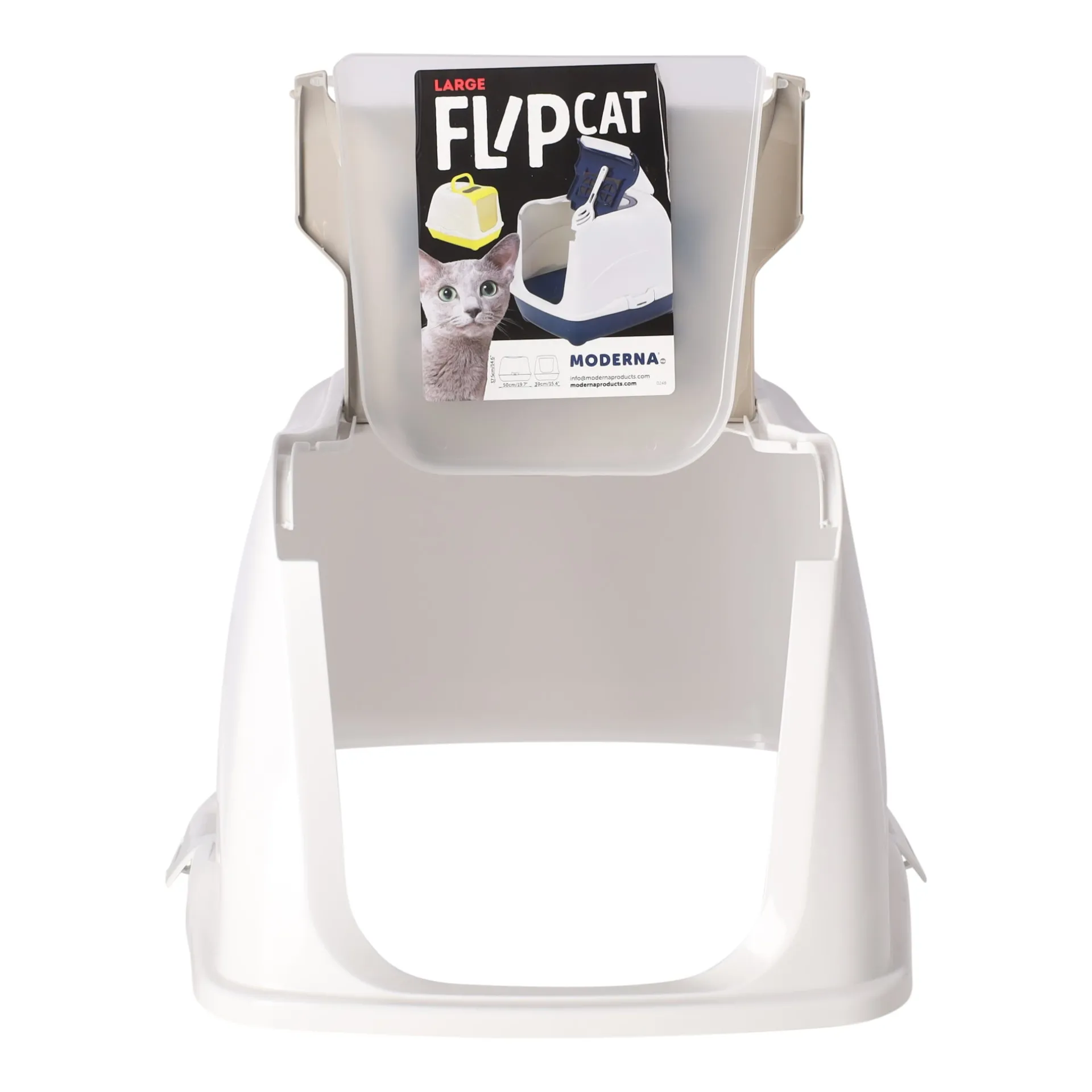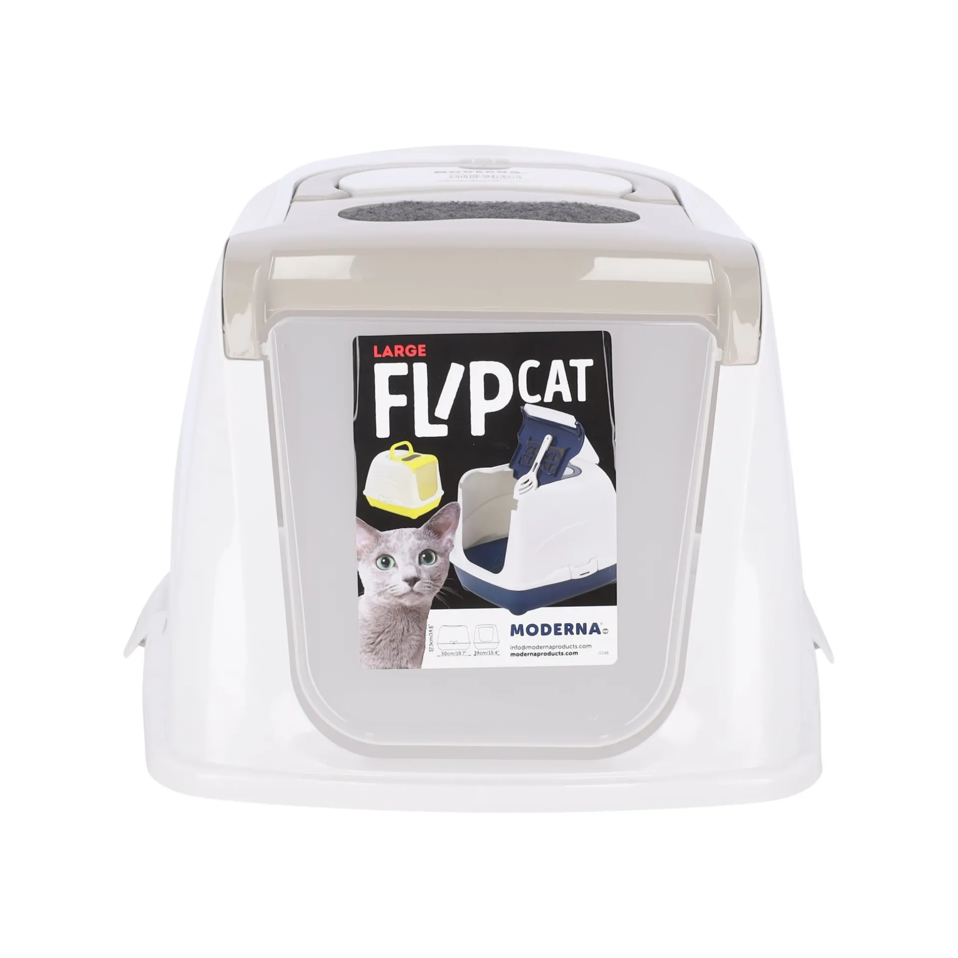 Moderna kattentoilet Flip Cat jumbo, stijlvol design met openklapbare deur voor eenvoudig schoonmaken. Handvat en doorschijnende deur, gemaakt van premium kunststof.