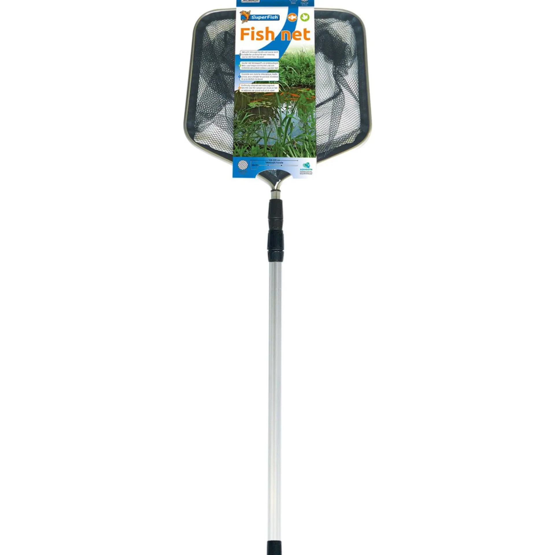 Het Vijverschepnet van Superfish is een onmisbaar accessoire voor iedere vijvereigenaar. Met dit aluminium net met telescopische steel kan je niet alleen vissen vangen, maar ook bladeren en ander vuil uit je vijver verwijderen. Het vijverschepnet heeft een grofmazig net en is licht in gebruik.