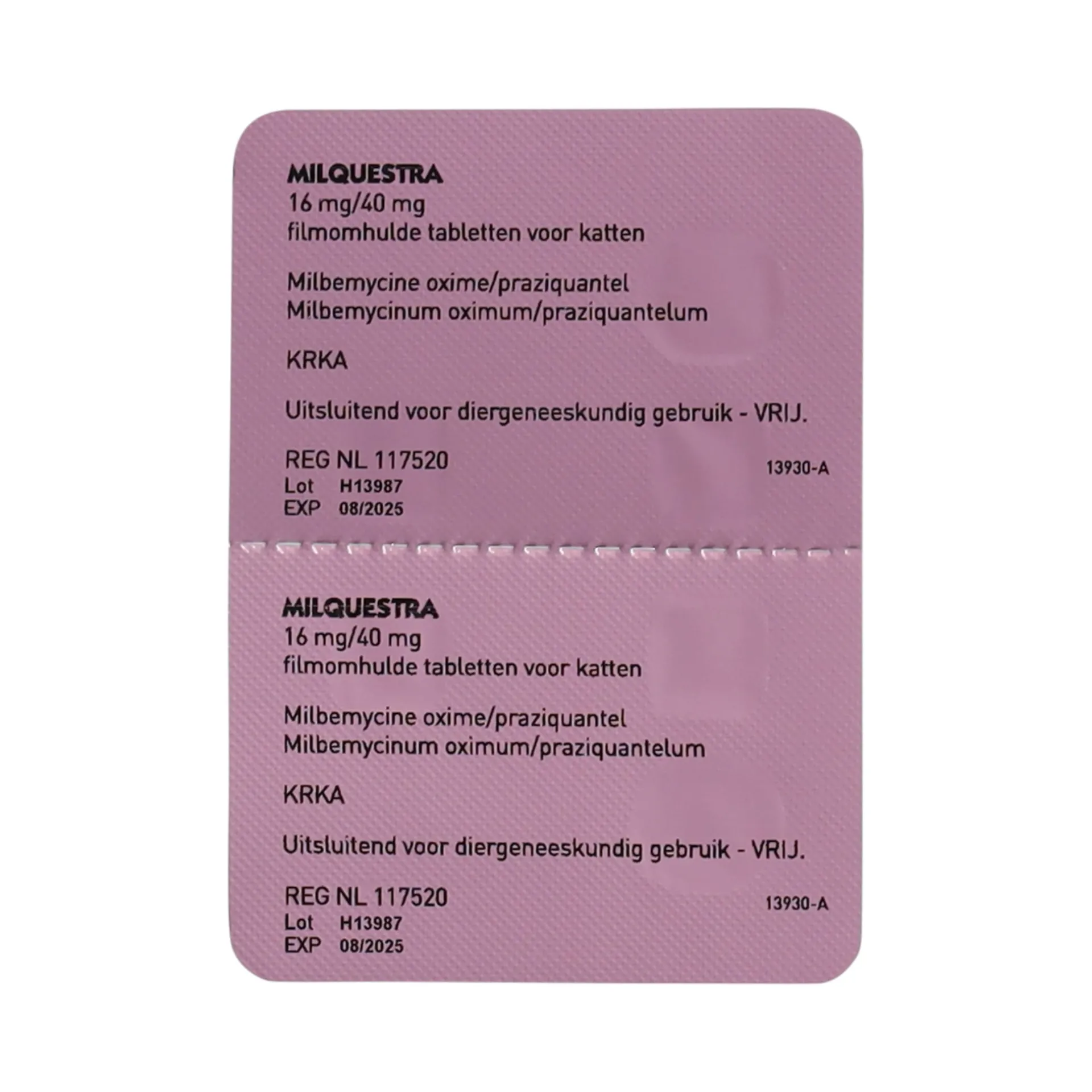 Milquestra ontwormingsmiddel kat 2 tabletten is een breedspectrum ontwormingsmiddel voor katten vanaf 2kg op basis van Milbemycine oxime en Praziquantel. Werkzaam tegen: lintwormen, haakwormen, spoelwormen en preventief tegen hartwormziekte.