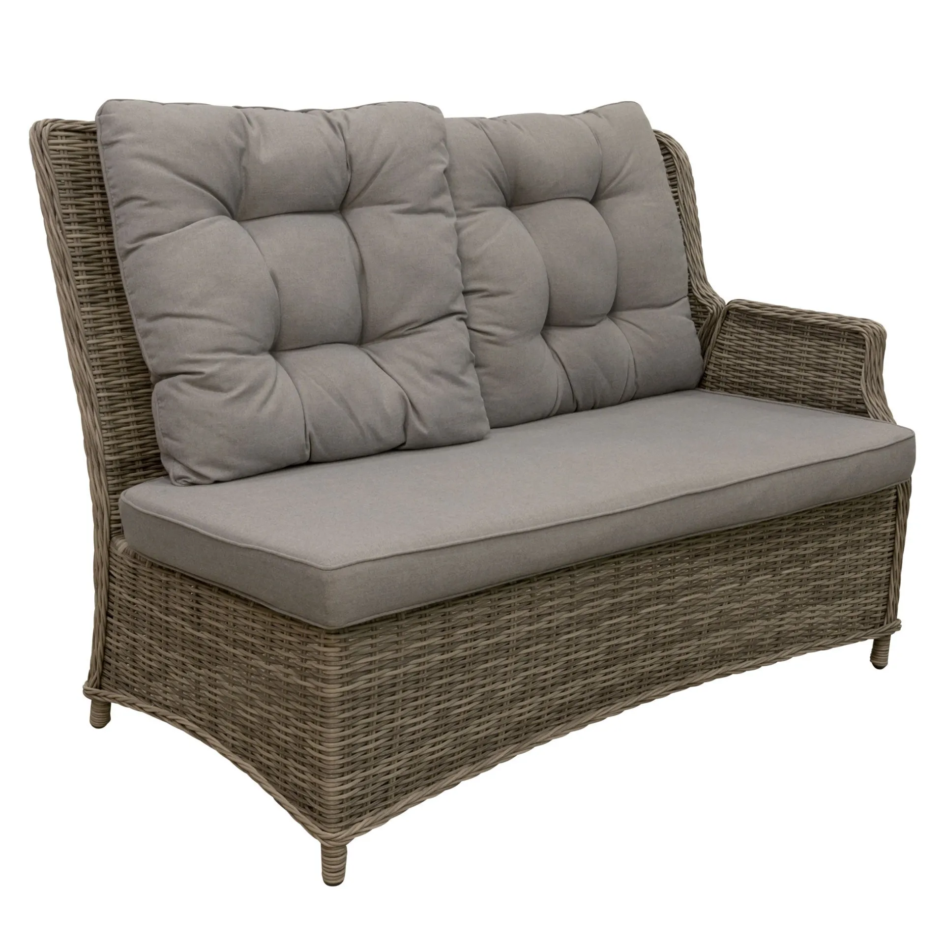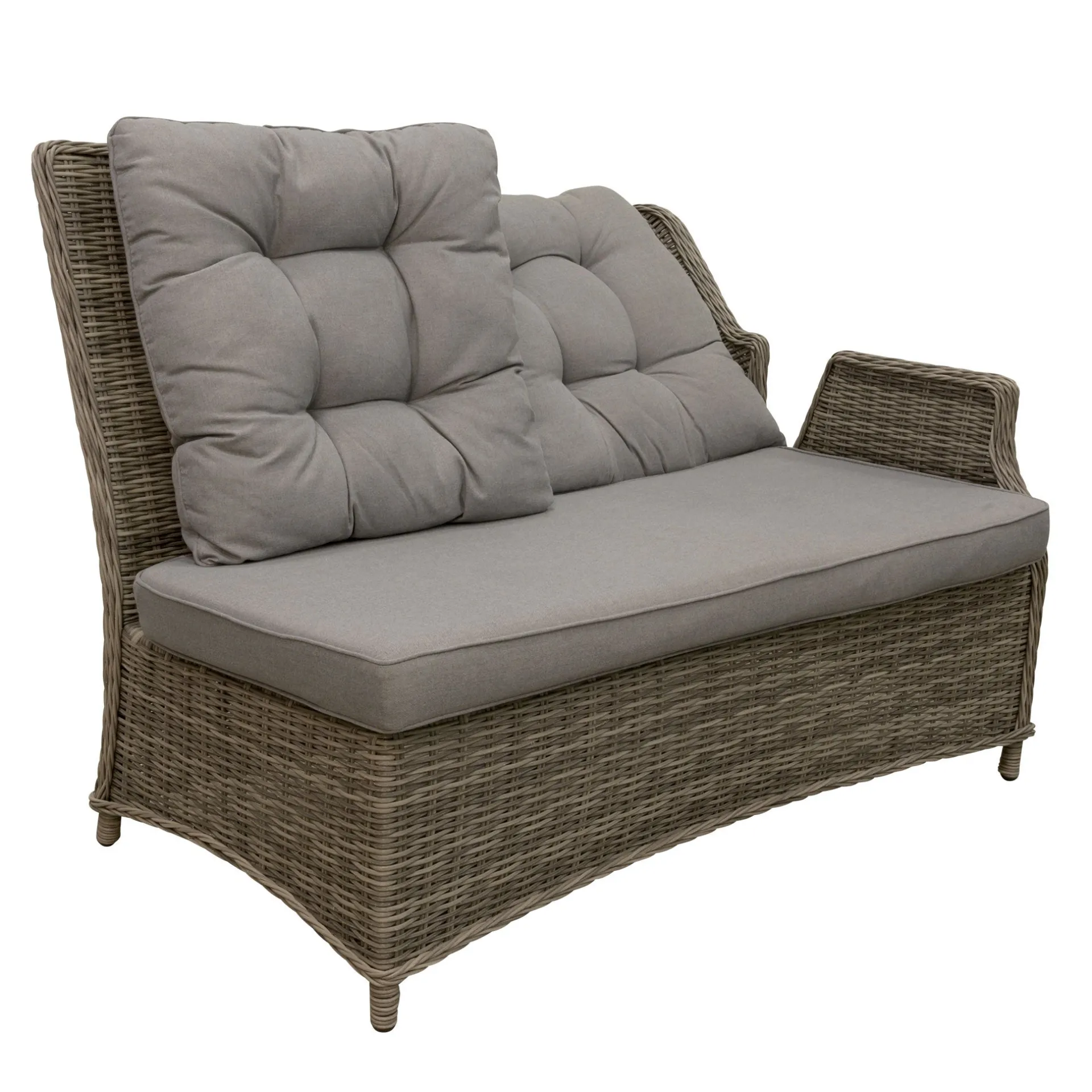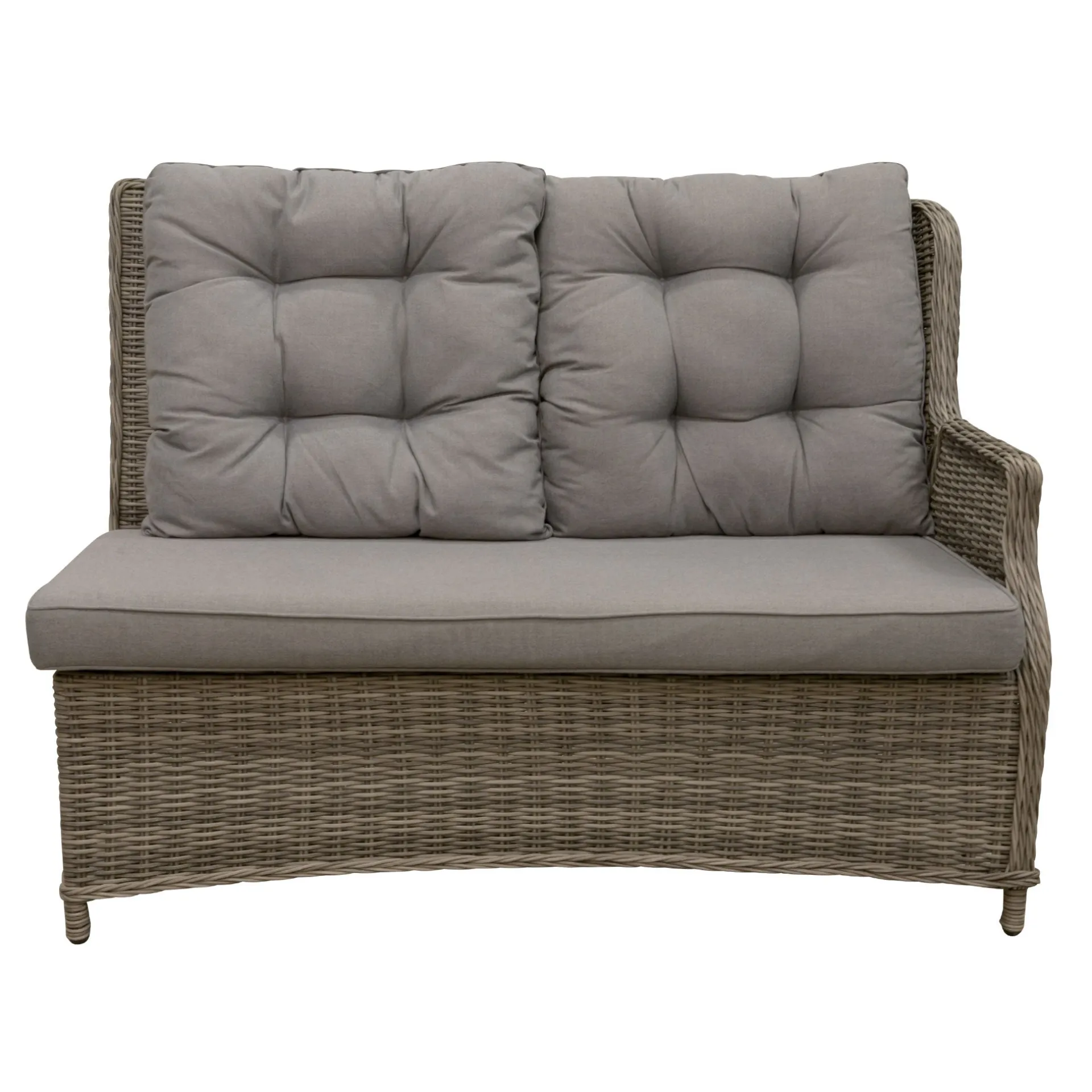 De 2-zits bank Aprano met linkse leuning is een stijlvolle en comfortabele keuze voor gebruik binnen of buiten. Het frame is gemaakt van 100% aluminium, waardoor het licht, roestvrij en makkelijk te onderhouden is. Het kunststof vlechtwerk is UV- en weerbestendig, wat zorgt voor een lange levensduur en een nette uitstraling. De bank wordt geleverd met kussens van 100% katoen, afgewerkt met een paspel op de stiklijn voor extra stevigheid. Het zitkussen is uitwasbaar, wat het onderhoud vereenvoudigt. De linker leuning is verstelbaar, waardoor de buitenste zitplaats bijna helemaal plat kan, ideaal om te ontspannen.