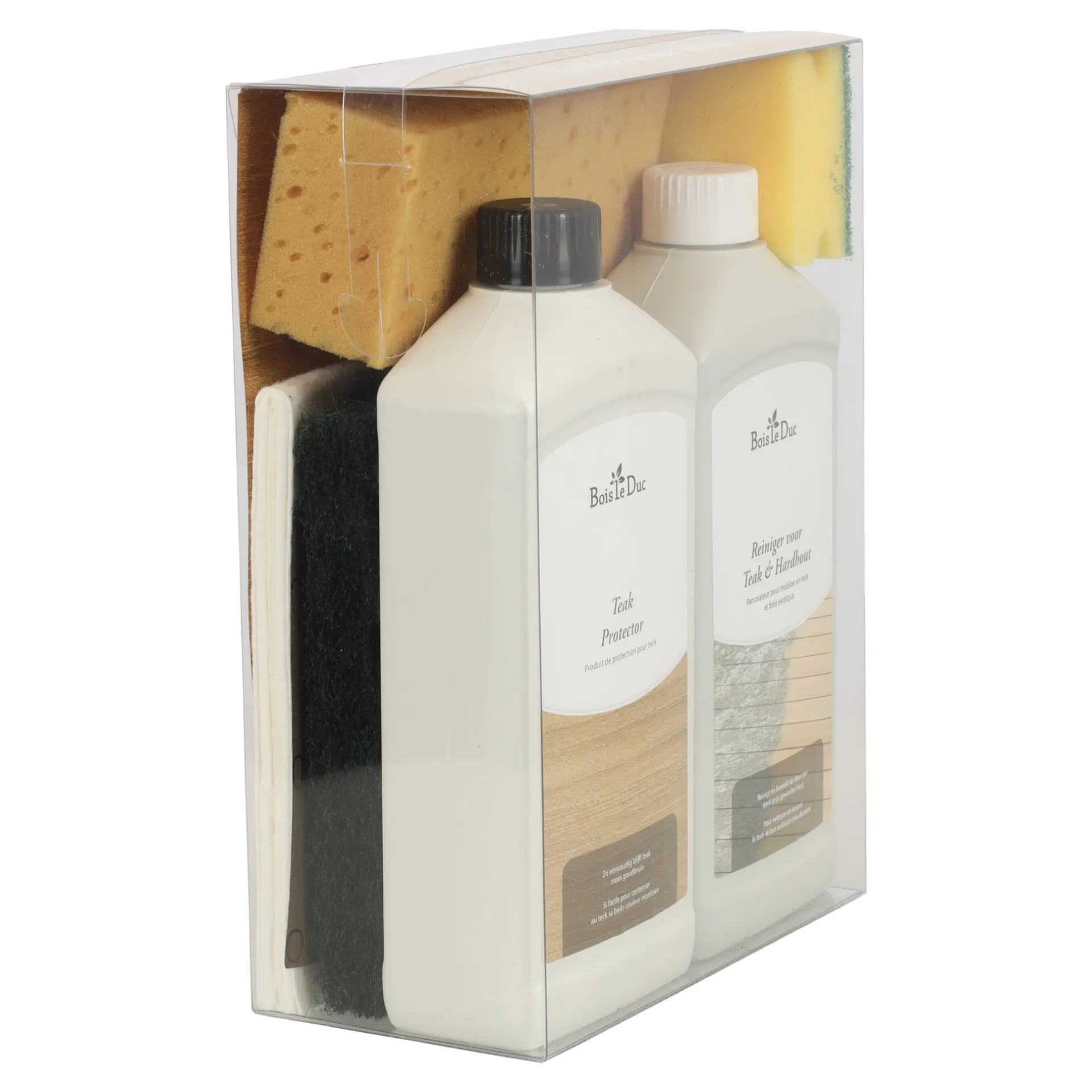 De kit teak 3-In-1 is een alles-in-één reinigings- en onderhoudsset, speciaal ontworpen voor teak- en houten meubelen. Deze kit bevat alles wat je nodig hebt om je teakmeubelen te reinigen, te herstellen en te beschermen tegen weersinvloeden. De 3-In-1 formule biedt een efficiënte reiniging, verwijdert vuil en vlekken, en verzorgt het hout met een beschermende laag die de levensduur verlengt. De set is eenvoudig in gebruik en helpt je om de natuurlijke schoonheid van teak te behouden, terwijl het hout tegelijkertijd wordt beschermd tegen verwering, schimmels en verkleuring. Perfect voor het onderhouden van teak tuinmeubelen of andere houten oppervlakken die blootgesteld worden aan buitenomstandigheden.