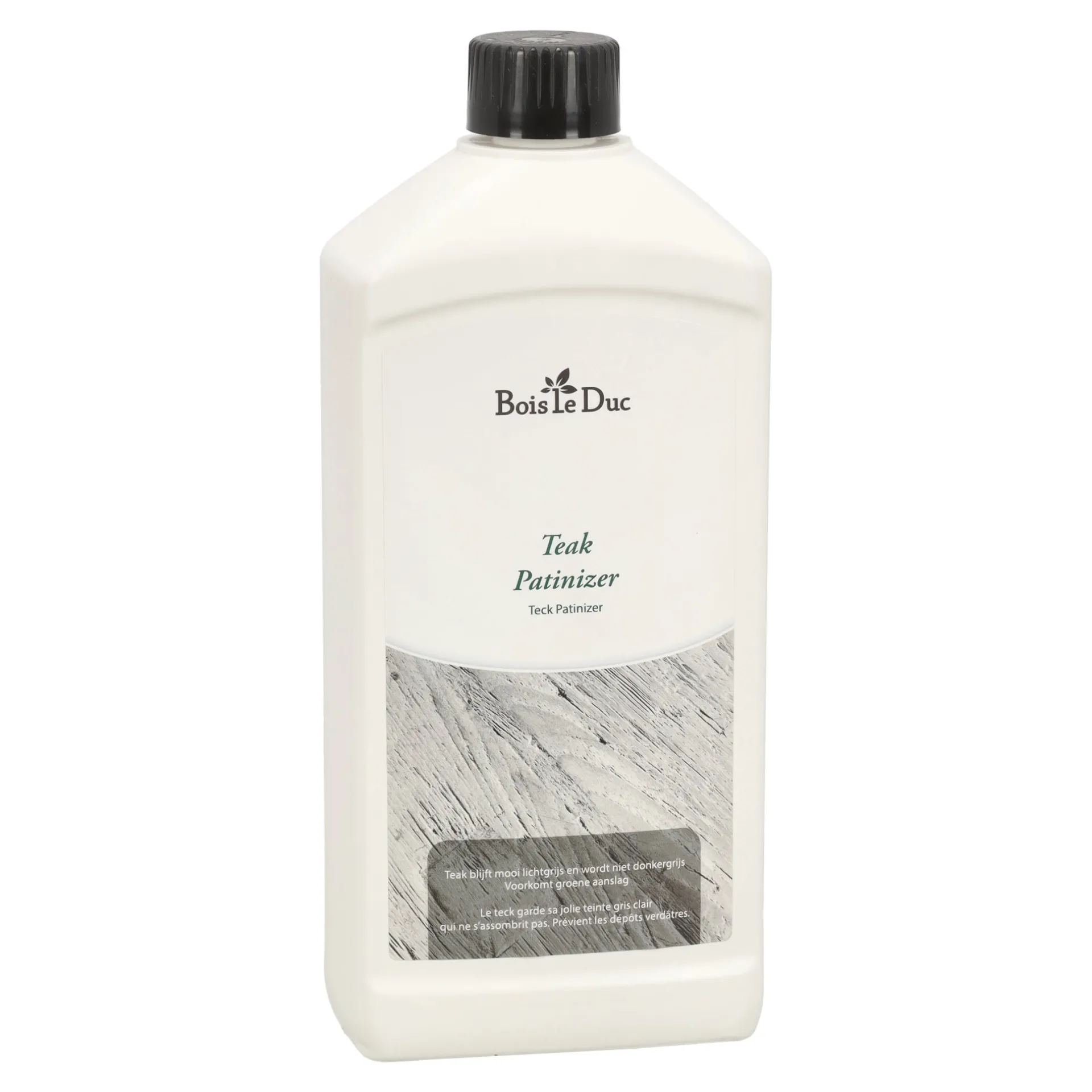 De Teak Patinizer in een 1-liter fles is ontwikkeld om de grijze tint van teakhout, die al op natuurlijke wijze is ontstaan, te behouden. Wanneer je tevreden bent met de grijze uitstraling van het hout, breng je de patinizer aan, en deze zorgt ervoor dat het vergrijzingsproces bijna stopt, zodat de kleur behouden blijft. Gebruik altijd eerst de teak cleaner voordat je de patinizer aanbrengt.