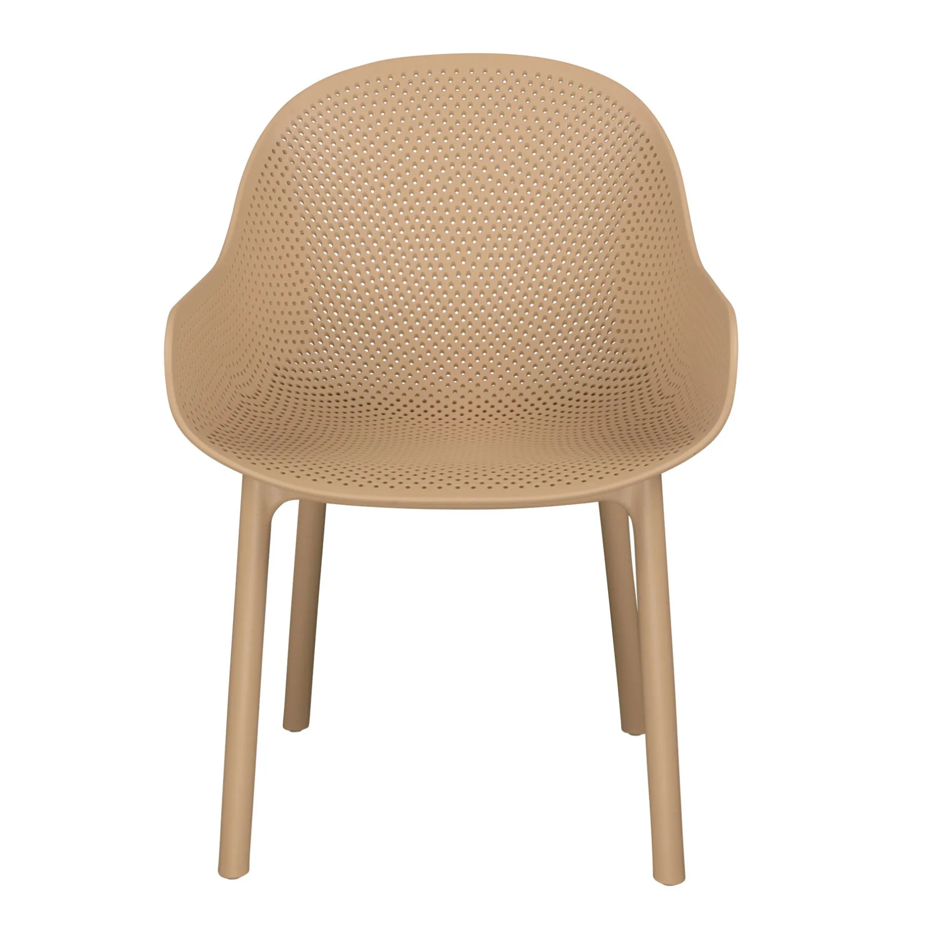 Deze stijlvolle stoel heeft een moderne uitstraling met een subtiel geperforeerd patroon, waardoor hij een luchtige en eigentijdse look krijgt. De comfortabele stoel biedt zowel stevigheid als een prettige zitervaring. De warme kleur voegt een speels accent toe aan elke ruimte, terwijl het materiaal zorgt voor duurzaamheid en eenvoudig onderhoud. Perfect voor zowel binnen als buiten gebruik.