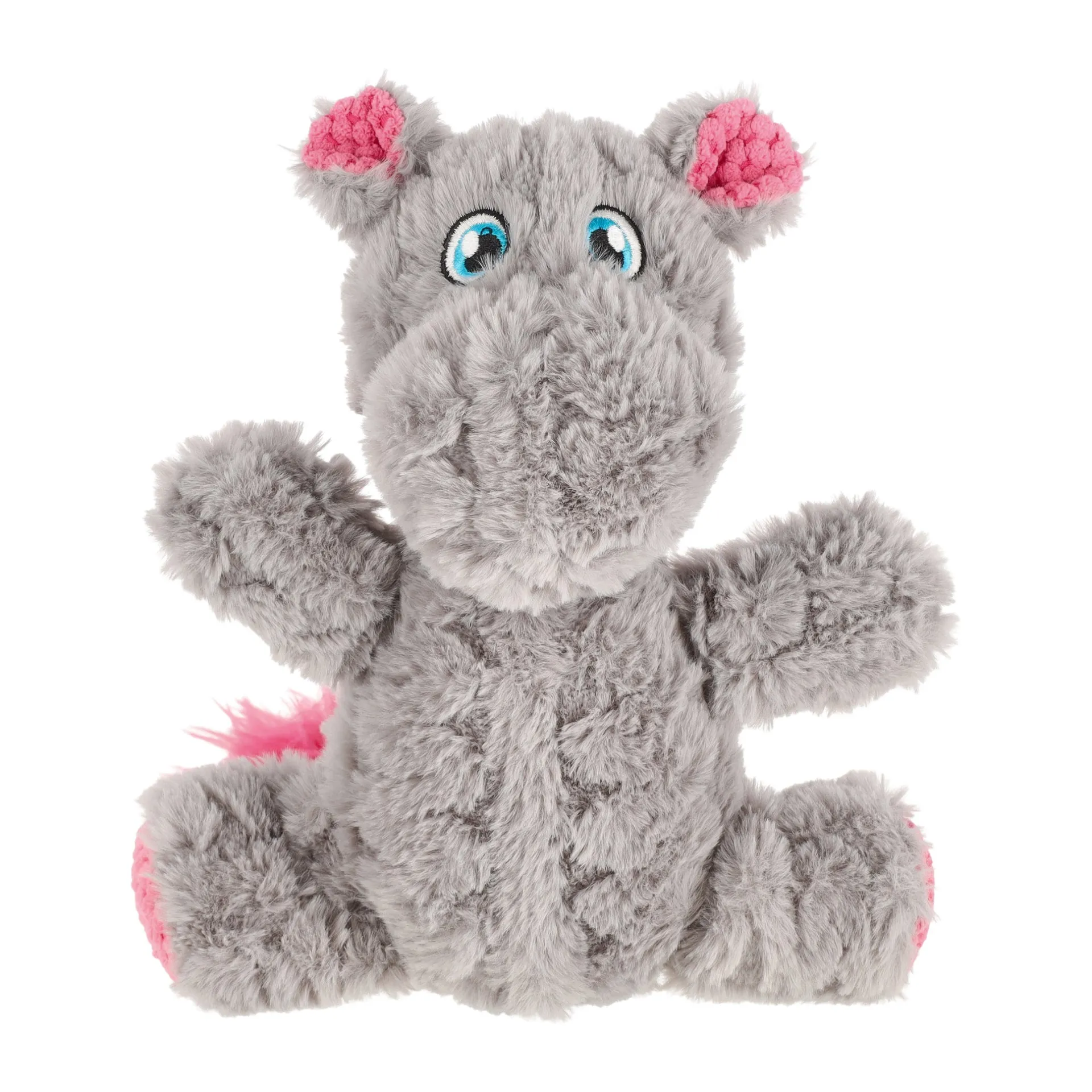 Knuffelbaar hondenspeeltje in de vorm van een grijs nijlpaard, gemaakt van zacht pluche met leuke details. Ideaal om mee te spelen én om tegenaan te liggen.