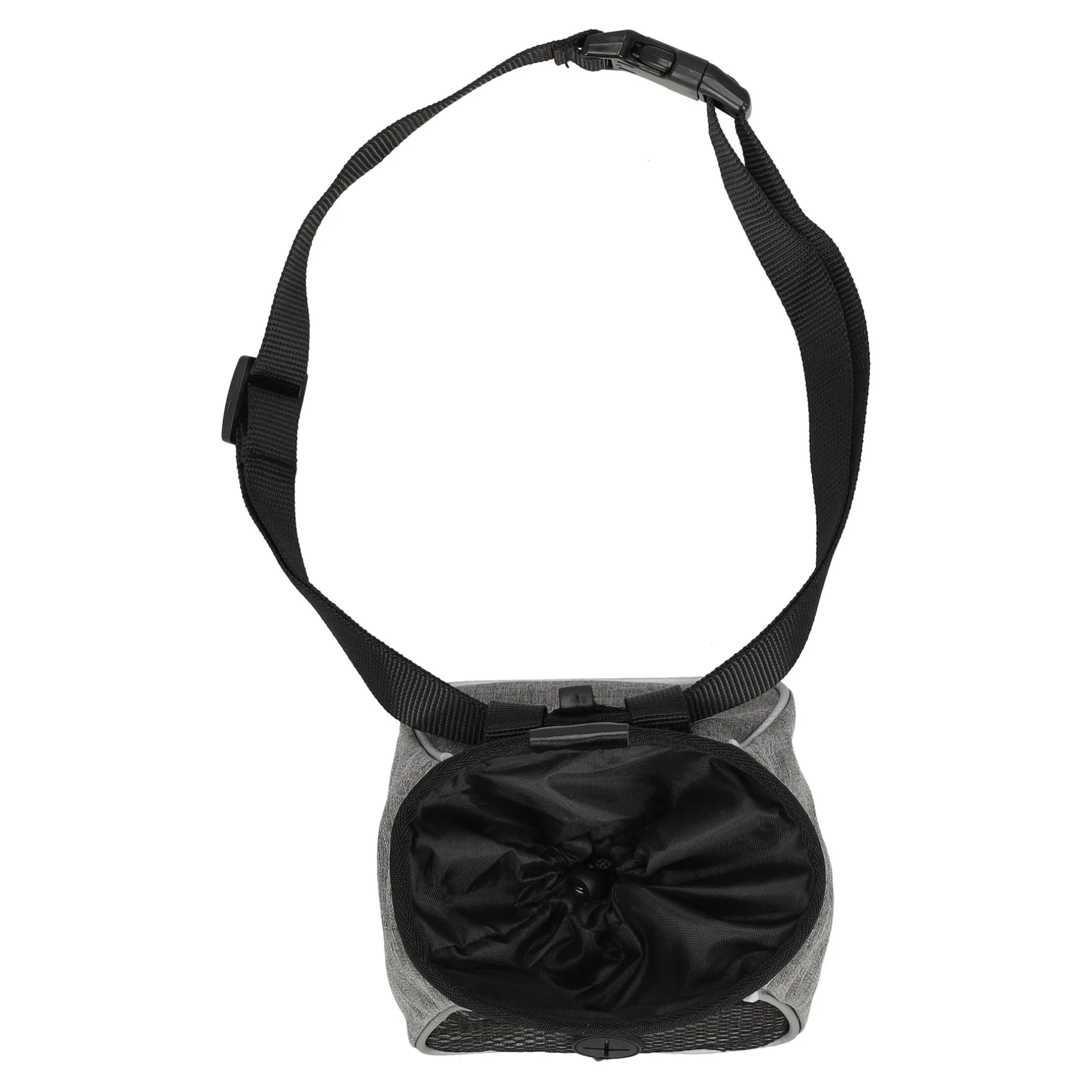Handige snacktas met riem, ideaal om tijdens het trainen of wandelen beloningssnacks voor je hond mee te nemen. Gemaakt van stevig materiaal met trekkoordsluiting en extra voorvak.
