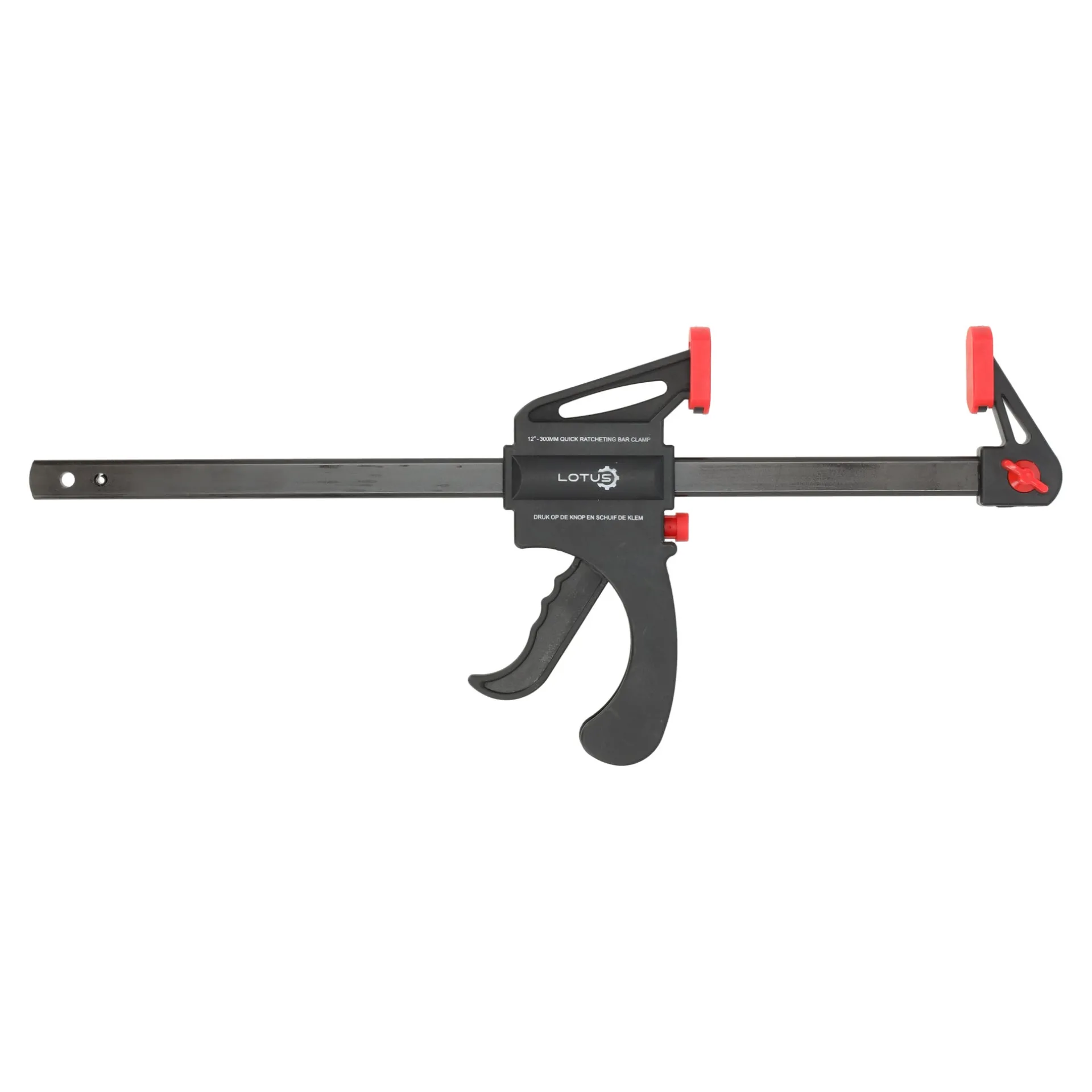 De Quick Lotus ratelklem van 300 mm is een betrouwbaar en praktisch hulpmiddel voor het stevig vastzetten van diverse materialen. Het ratelmechanisme maakt het eenvoudig om de klemdruk nauwkeurig te regelen, waardoor je een stevige grip hebt zonder het materiaal te beschadigen.