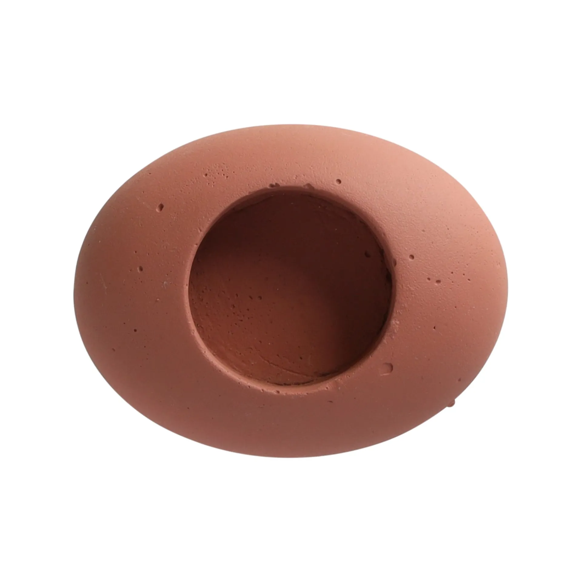 Stevige kaarshouder van cement met een robuuste uitstraling.