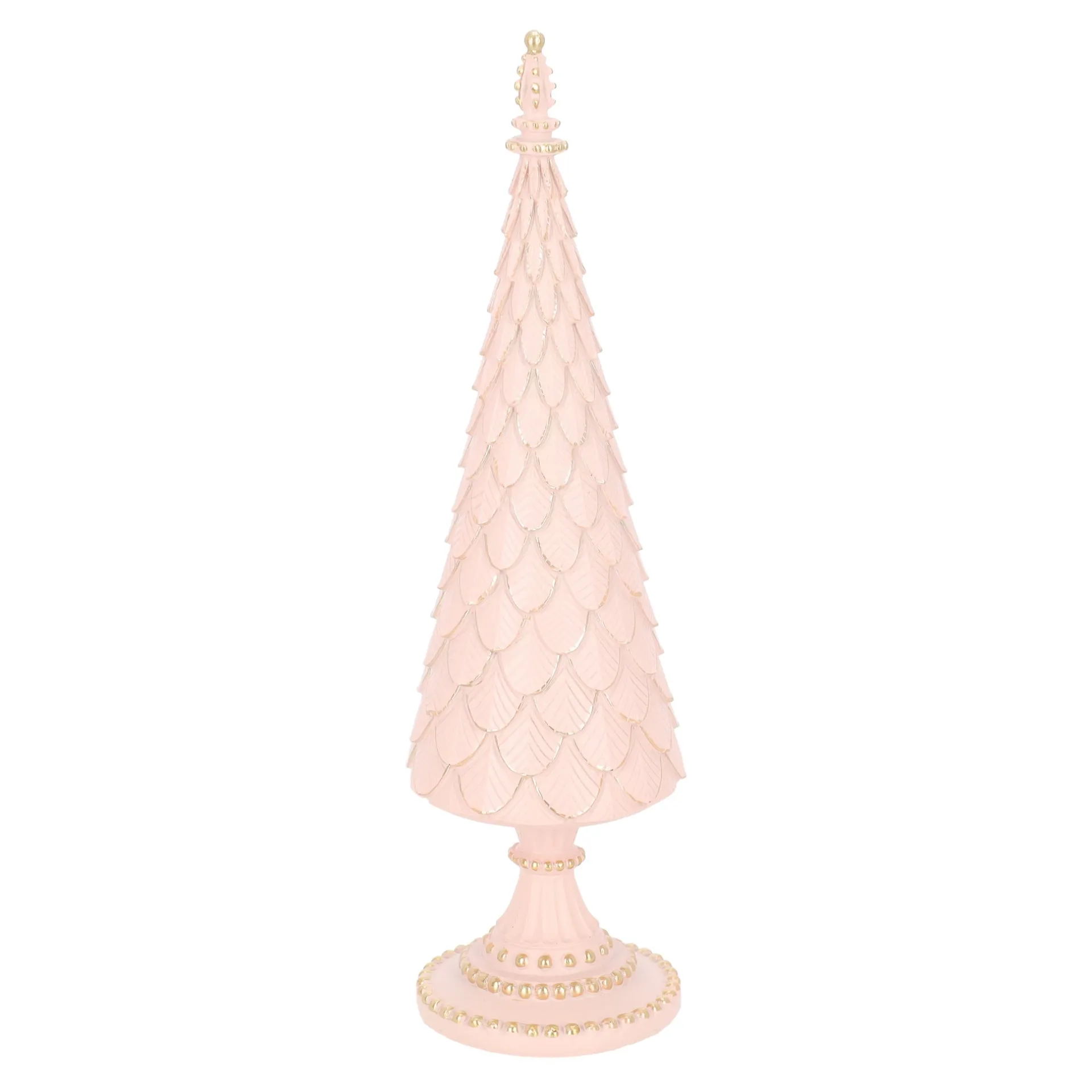 Hoge roze decoratieve boom van 42 cm op een sierlijke voet, mooi als opvallende kerstdecoratie op tafel of dressoir.