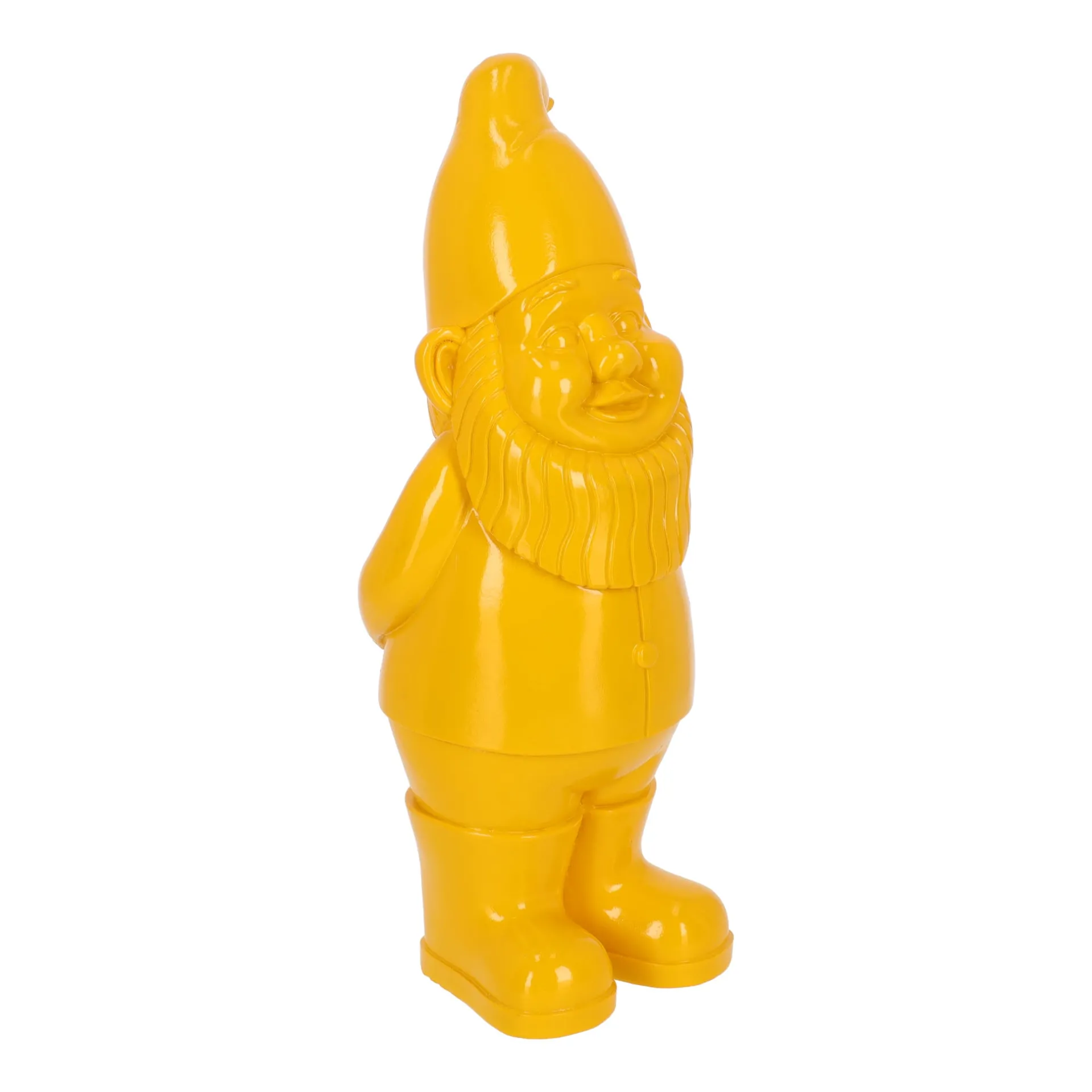 Deze vrolijke kabouter in een opvallende gele kleur is een echte blikvanger voor binnen of buiten. Gemaakt van stevig kunststof met een glanzende afwerking, waardoor hij goed bestand is tegen verschillende weersomstandigheden. De kabouter brengt met zijn speelse uitstraling kleur en karakter in elke tuin, op het terras of in huis.