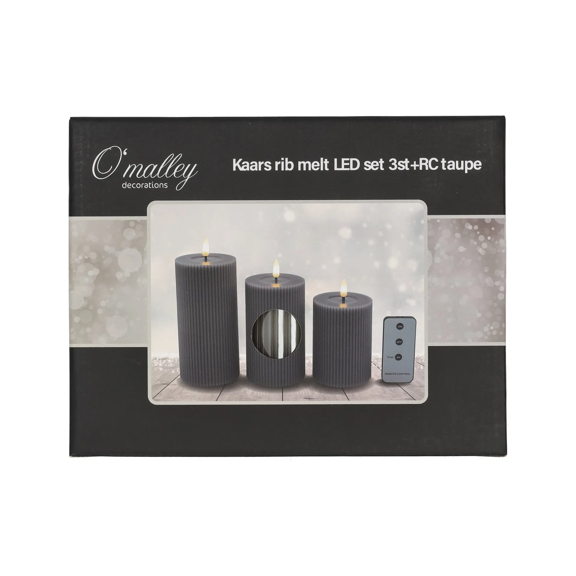 Outlet O’malley LED Kaars Rib Melt 3st Taupe