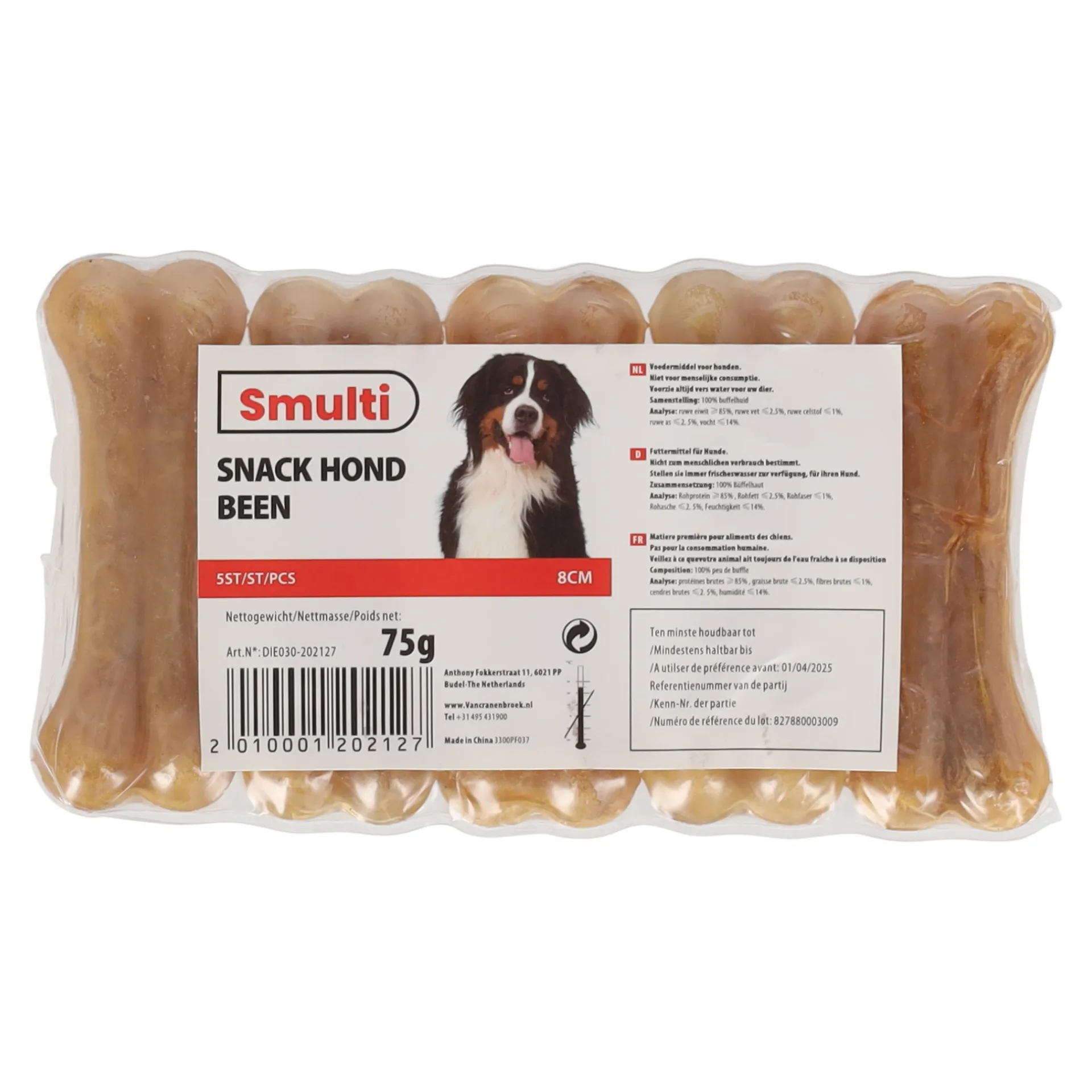 De snack hond been is een stevige en natuurlijke kauwsnack voor honden, gemaakt van hoogwaardig botmateriaal. Deze kauwsnack biedt langdurig kauwplezier en helpt bij het ondersteunen van de mondgezondheid door het reinigen van het gebit en het verminderen van tandplak en tandsteen. Het bot is een natuurlijke bron van eiwitten en mineralen, zonder kunstmatige toevoegingen, wat het een gezonde keuze maakt voor honden van alle rassen en leeftijden. Ideaal voor honden die genieten van een stevige en uitdagende kauwsnack. Een heerlijke traktatie die bijdraagt aan het welzijn van je hond! Laat een hond nooit alleen met kauwmateriaal. Zorg altijd voor vers drinkwater.