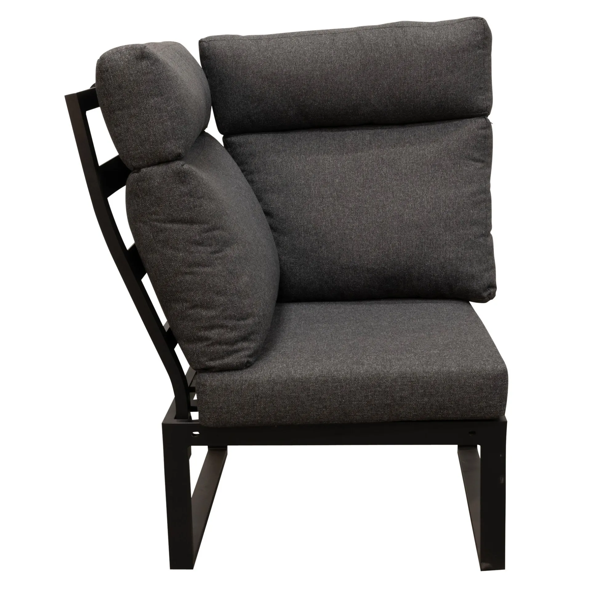 De Harston hoek is een stijlvolle en moderne bank die goed past in verschillende stijlen. De zwarte kleur geeft de bank een luxe uitstraling. Het strakke ontwerp en de robuuste constructie maken de Harston bank een duurzame keuze voor dagelijks gebruik. De bank is van Aluminium waardoor het goed tegen weersomstandigheden kan.