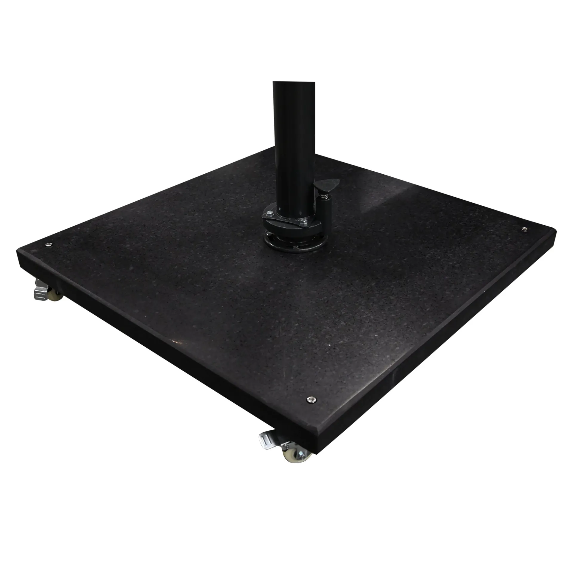 Op een warme, zonnige dag heb je soms wat beschutting nodig, dus een parasol is een goede oplossing. Om je zweefparasol stevig te houden, gebruik je een parasolvoet of parasoltegel. De basis is antraciet van kleur en is gevuld met beton. De parasolvoet is voorzien van handige wielen waarmee je de voet gemakkelijk kunt verplaatsen.