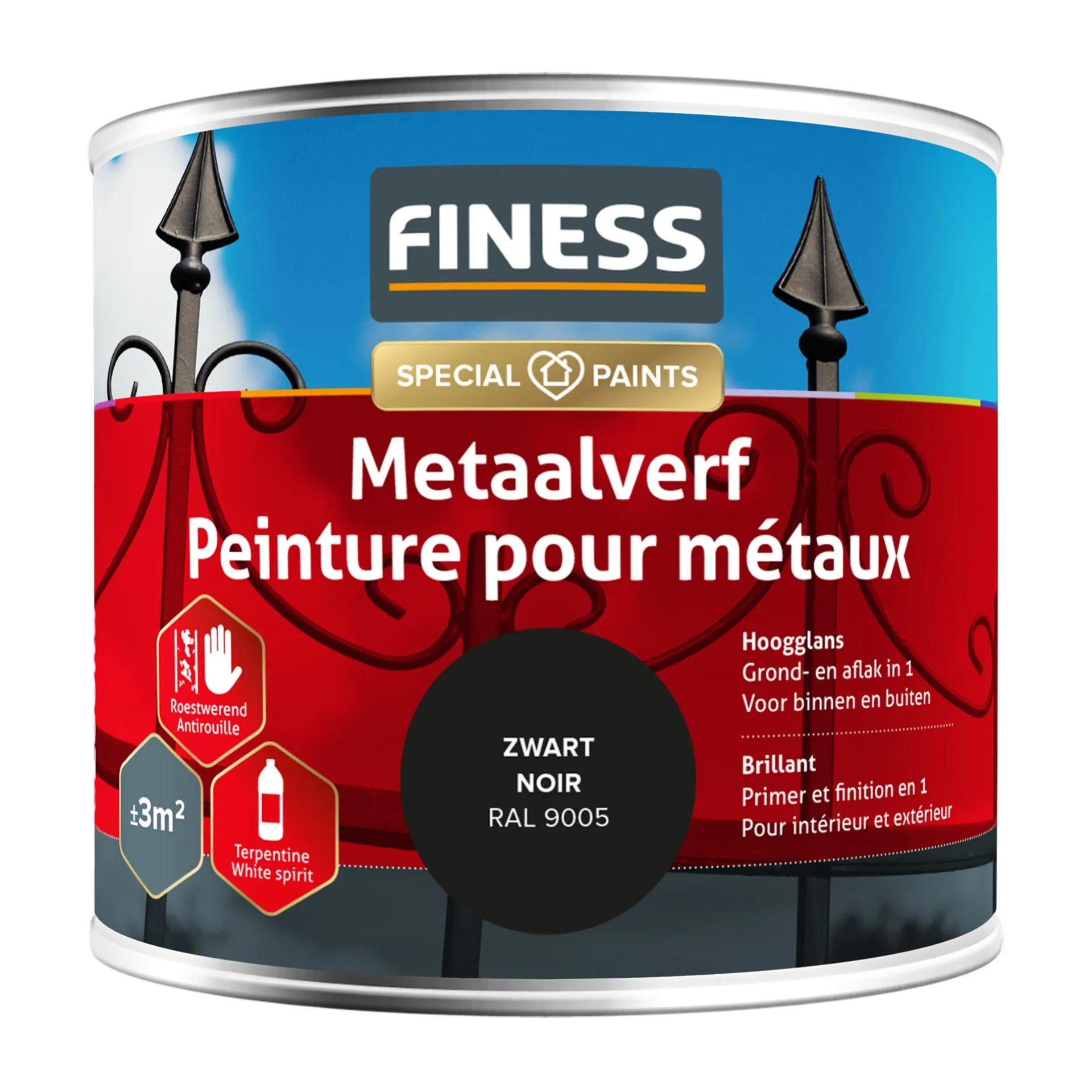 Productnaam:Metaalverf hoogglans zwart 9005 250 Finess