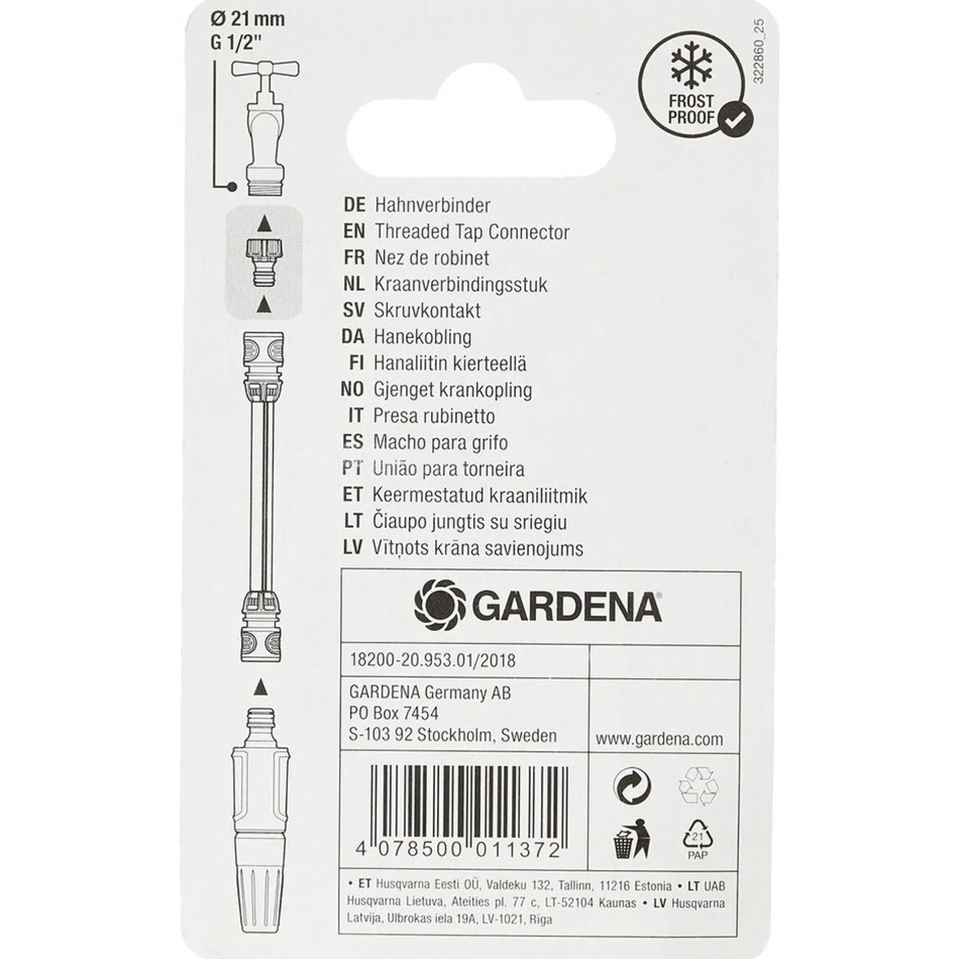 Een GARDENA kraanstuk voor 21 mm (G 1/2″) draad garandeert een stabiele koppeling tussen kraan en slang. Comfortabel en lekvrij in gebruik.