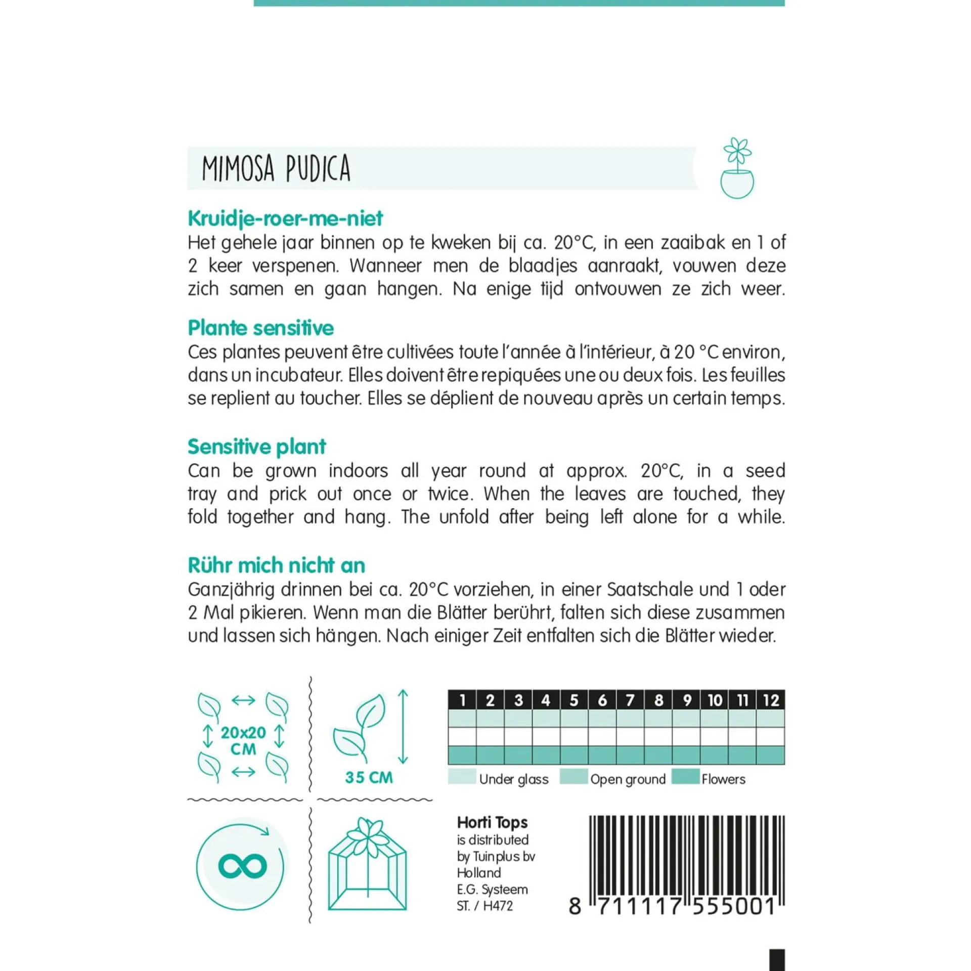 Mimosa Pudica is een uniek plantje dat bekend staat om zijn reactie op aanraking. De bladeren vouwen zich samen bij de kleinste beweging, Deze tropische plant is binnen te kweken en geeft een exotisch tintje aan uw interieur.